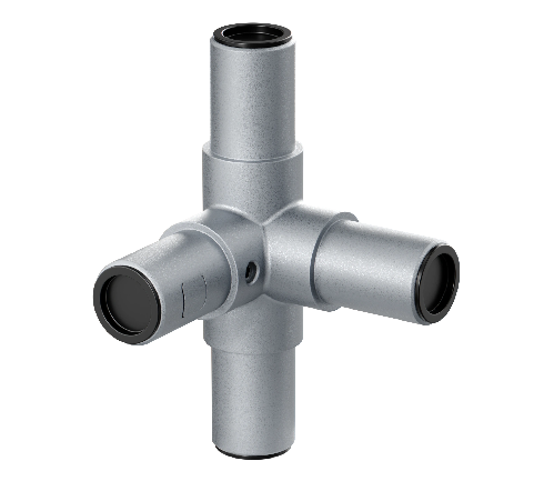 Соединяет трубный профиль с четырех сторон, все углы при этом соединение под 90 градусов в таких элементах лестничной конструкции как поручни, ограждения.