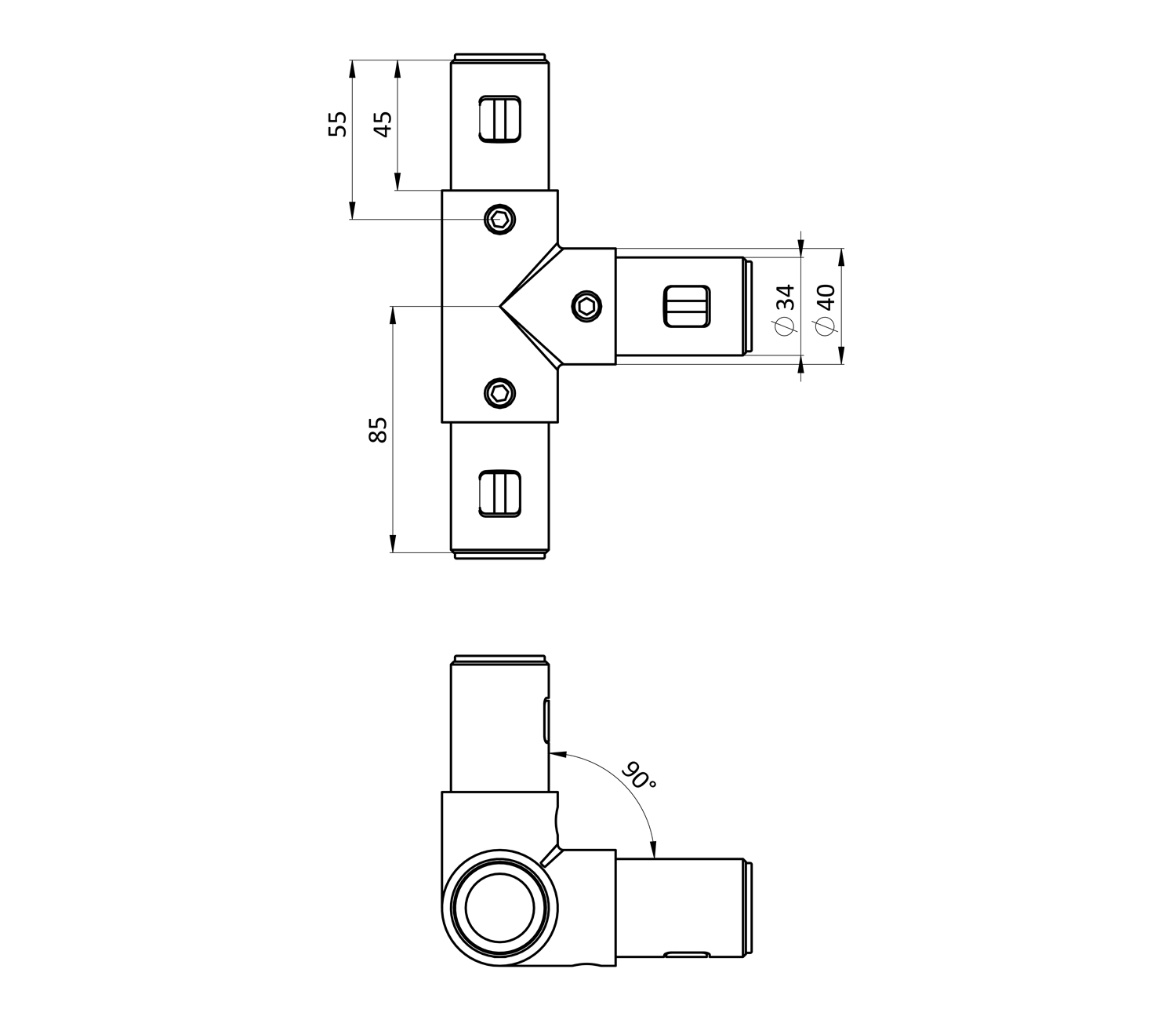 T-соединитель 90 градусов D40T-соединитель 90 градусов D40