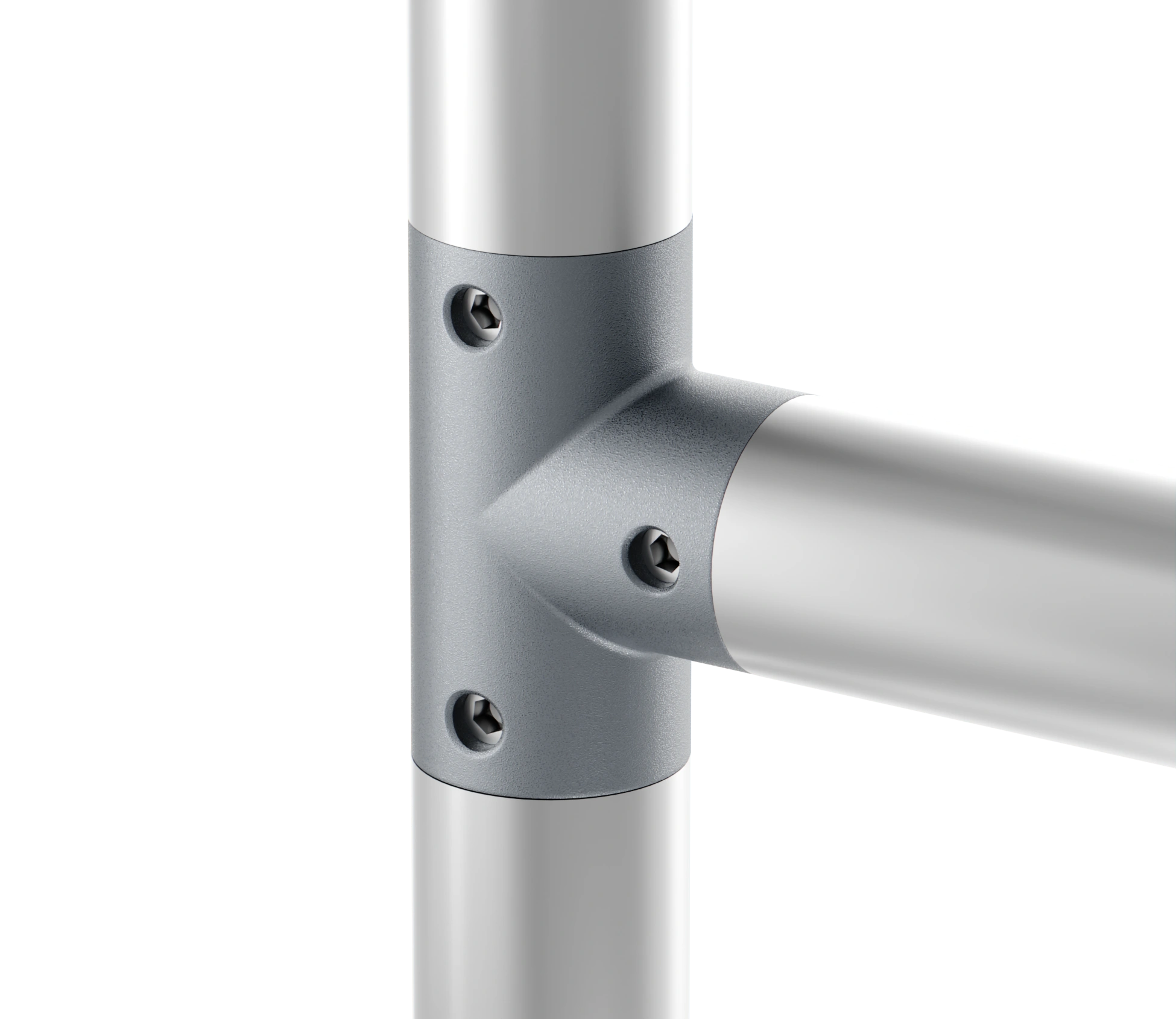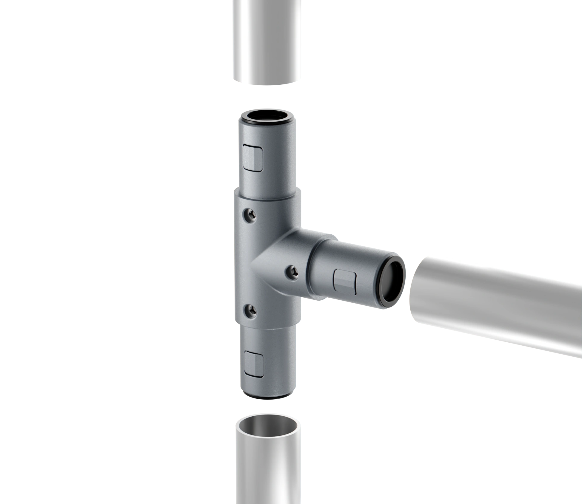 Данные соединители имеют специальную внутреннюю систему фиксации, которая фиксирует трубный профиль простым креплением - винтами без каких-либо дополнительных механических работ.