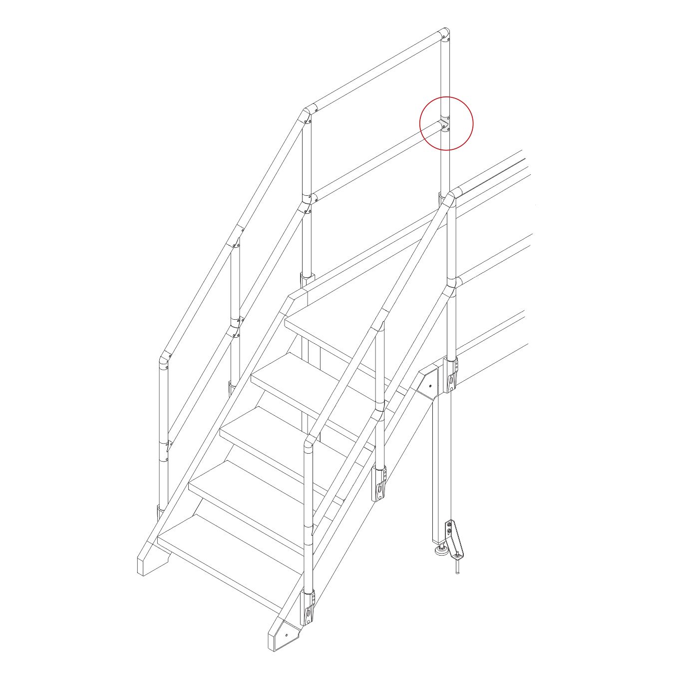 Соединяет трубный профиль с трех сторон, все углы при этом образуют соединение под 90 градусов в таких элементах лестничной конструкции как поручни, ограждения.