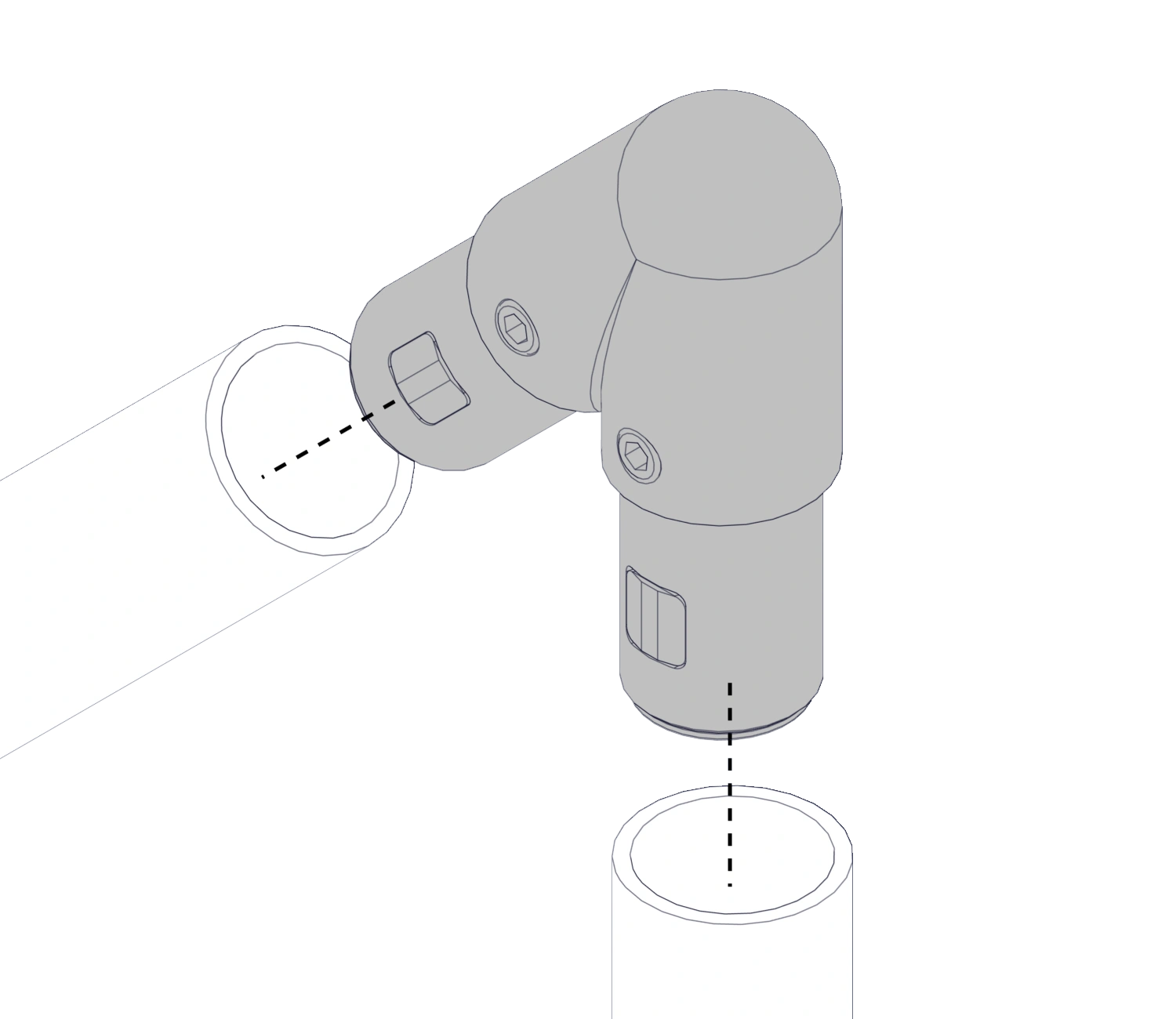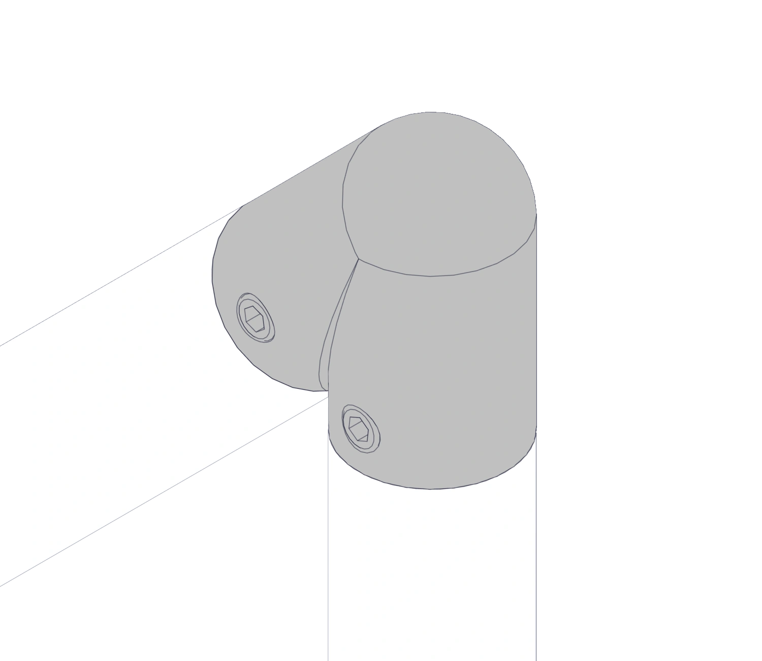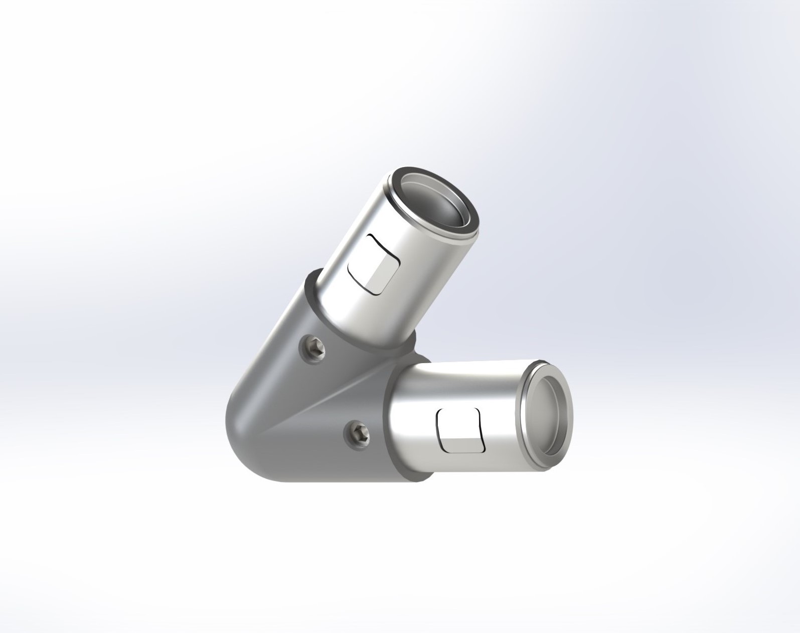 Соединяет трубный профиль с двух сторон под 45 градусов в таких элементах лестничной конструкции как поручни, ограждения.