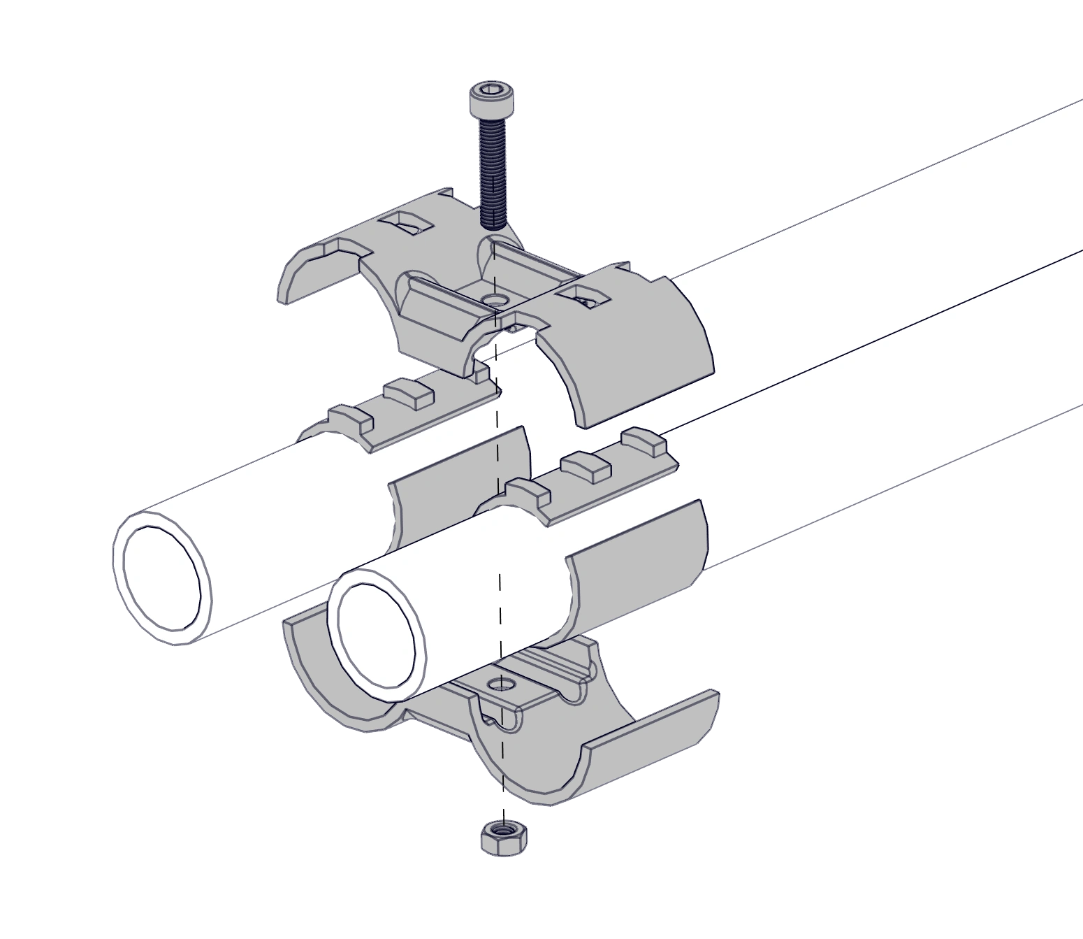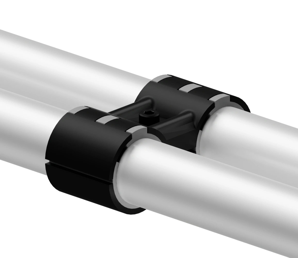 Используется совместно с алюминиевым трубным профилем D 28 мм в модульной трубной системе, которая представляет собой набор соединителей, роликовых направляющих (рольгангов) и других вспомогательных компонентов, позволяющих быстро изготовить специальные виды стационарного и мобильного оборудования и приспособлений, применимых на складе, сборочном производстве, таких как гравитационные стеллажи, тележки, рабочие столы и станции с возможностью их быстрой настройки, модификации.