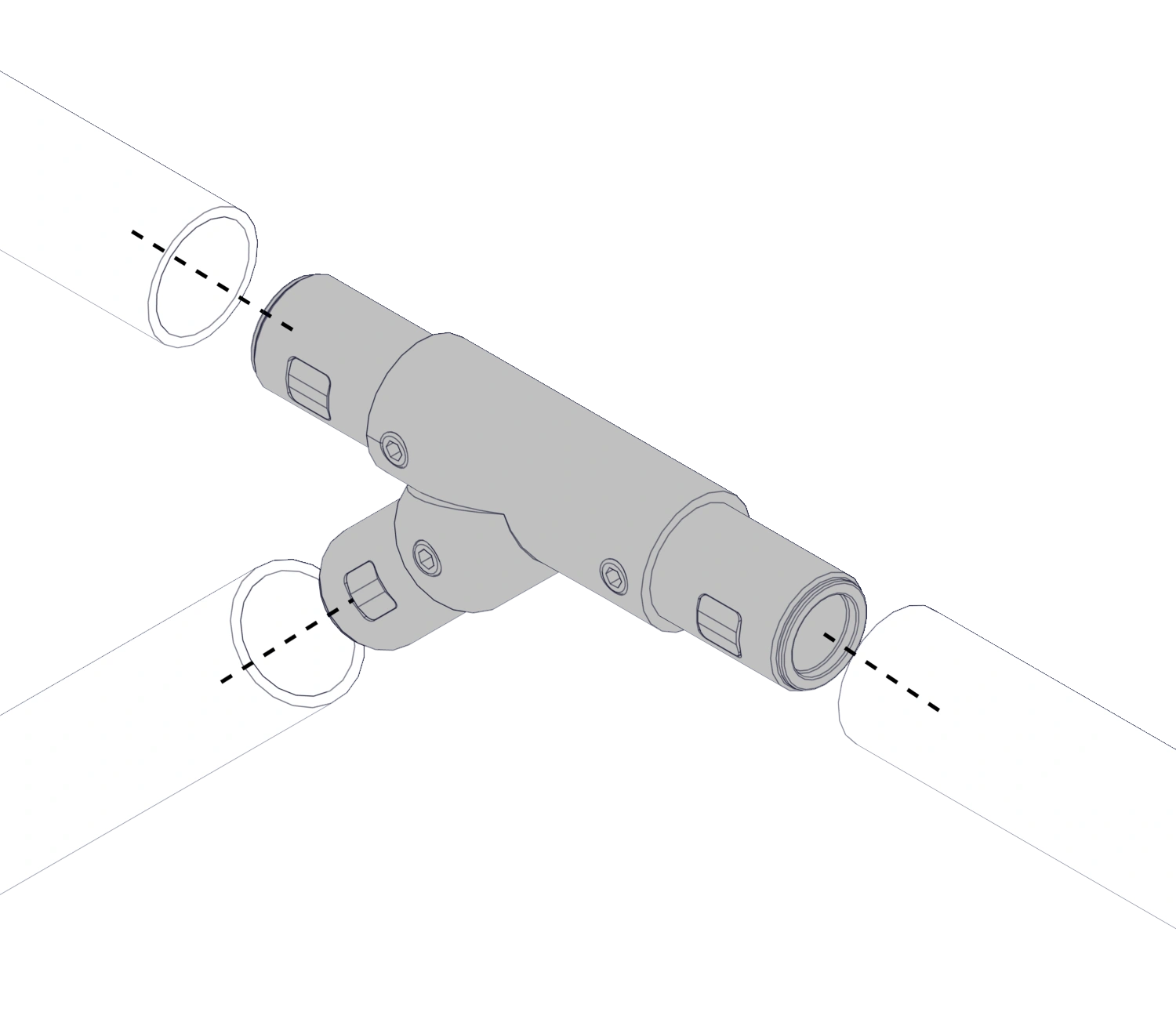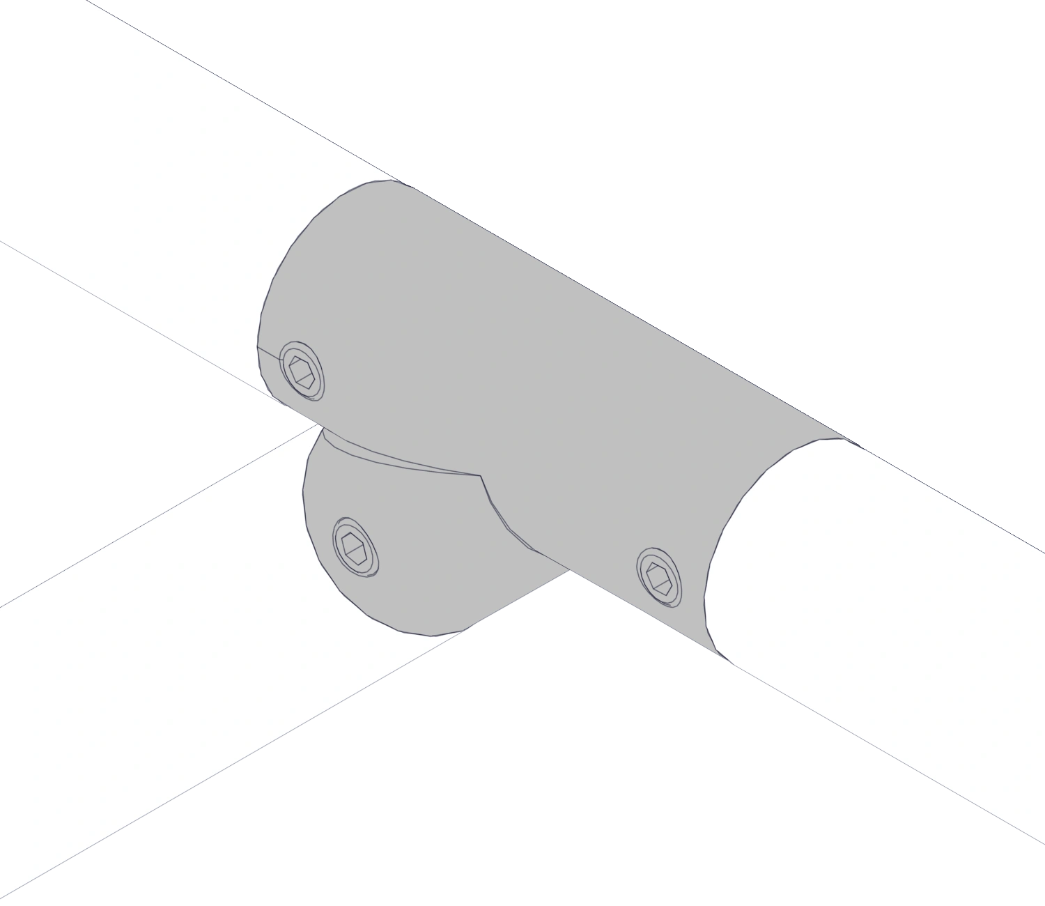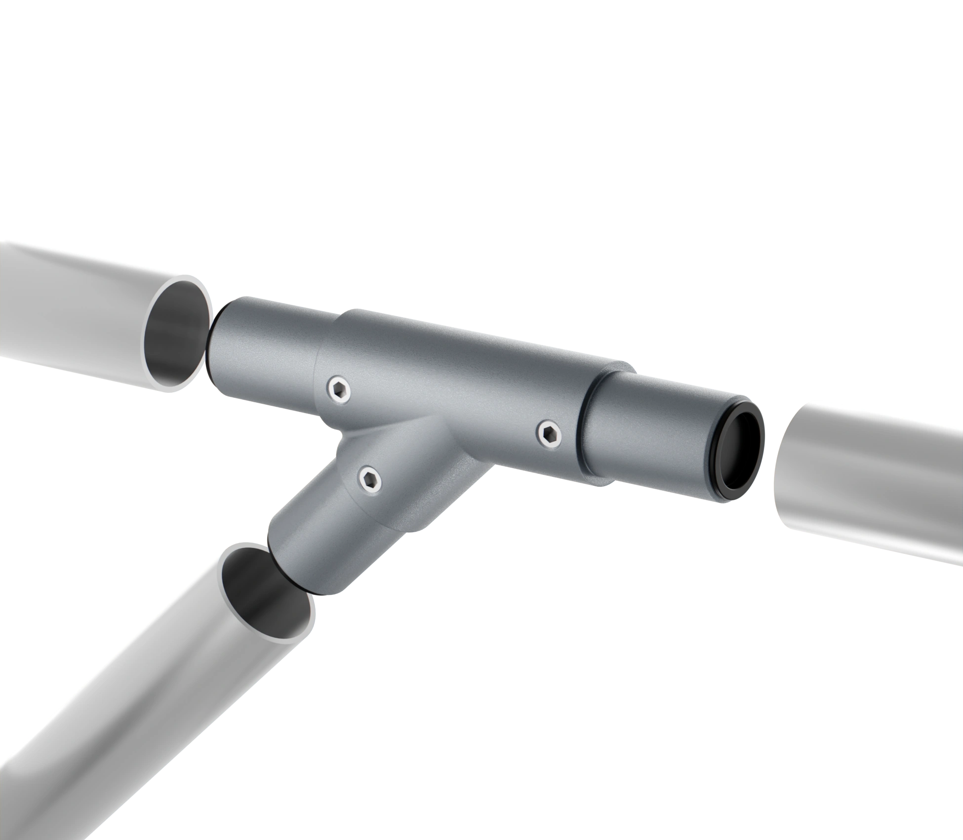Данные соединители имеют специальную внутреннюю систему фиксации, которая фиксирует трубный профиль простым креплением - винтами без каких-либо дополнительных механических работ.