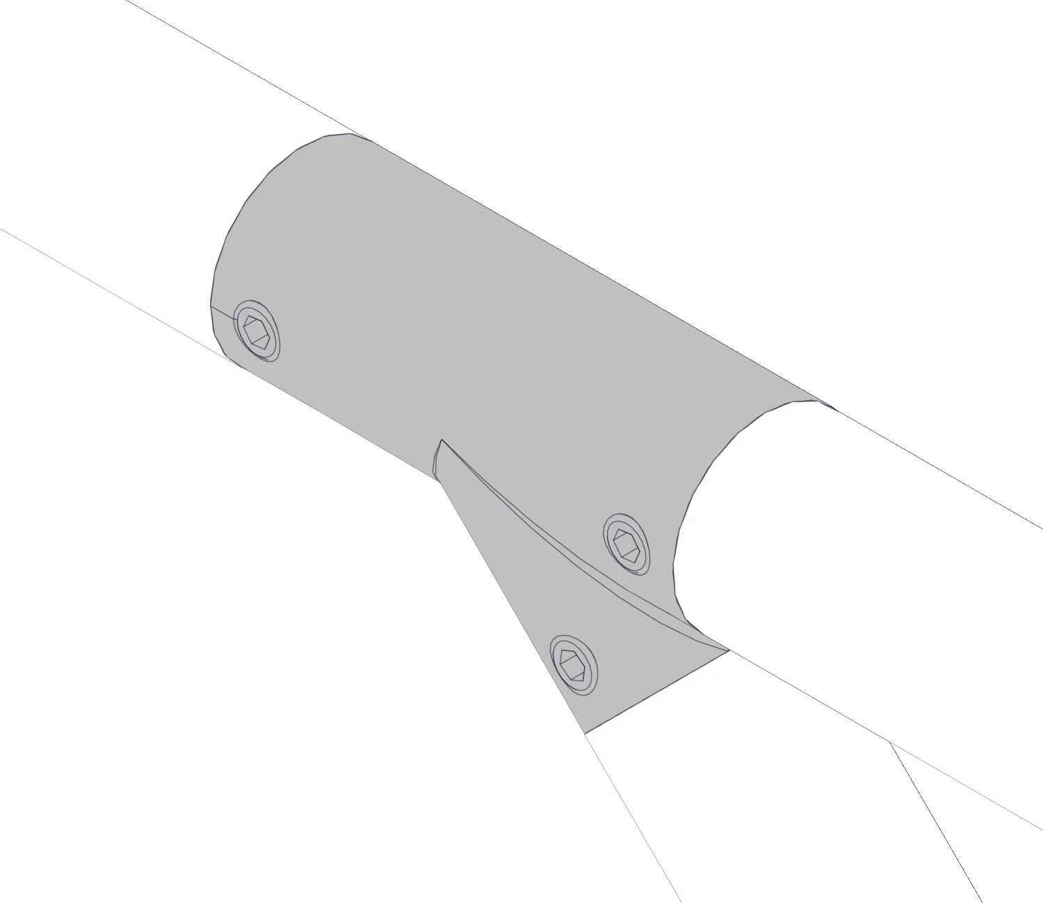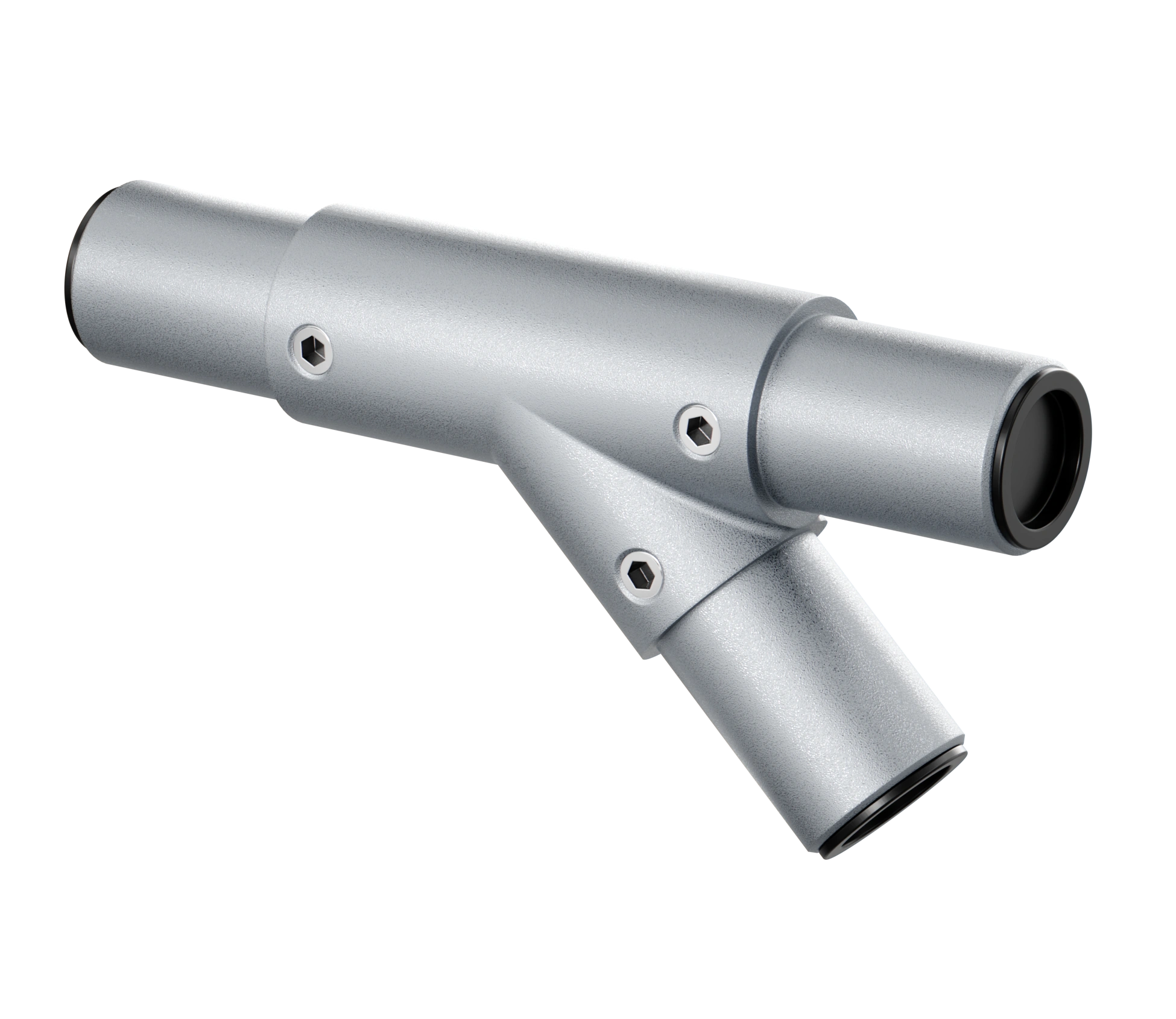Соединяет трубный профиль с трех сторон, один угол при этом образует соединение под 45 градусов в таких элементах лестничной конструкции как поручни, ограждения.
