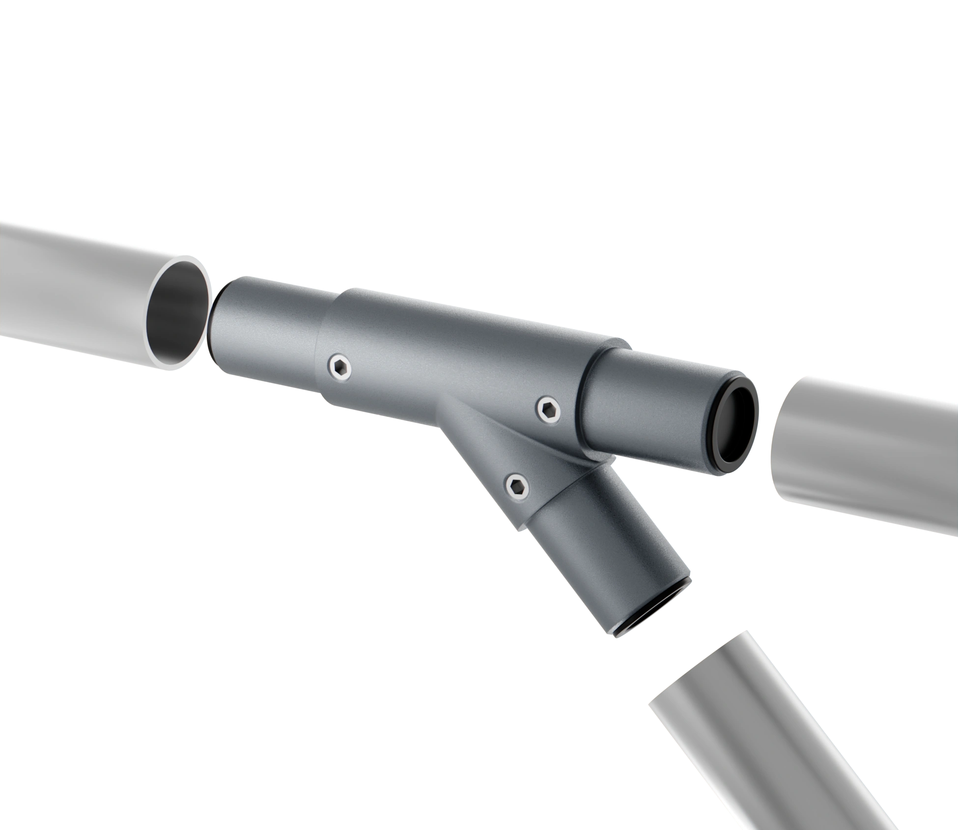 Данные соединители имеют специальную внутреннюю систему фиксации, которая фиксирует трубный профиль простым креплением - винтами без каких-либо дополнительных механических работ.