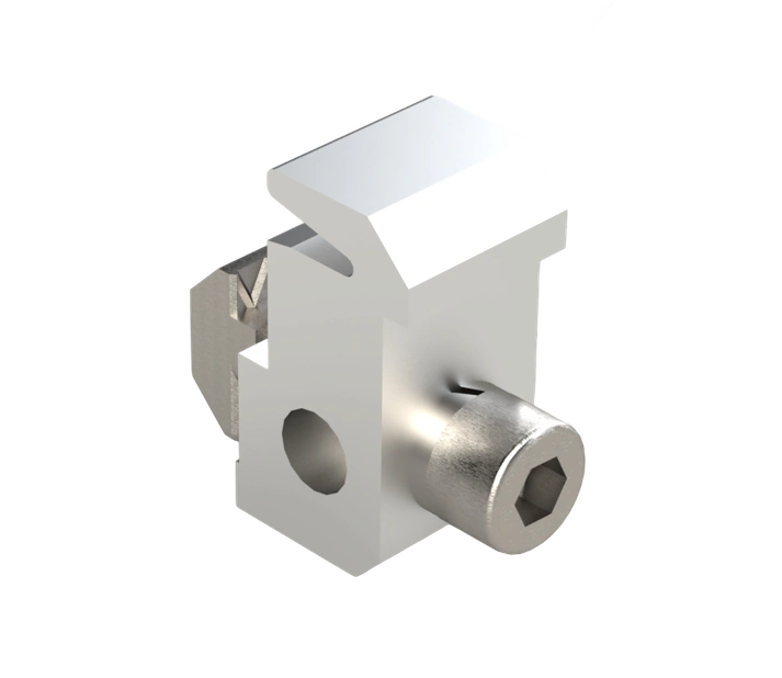 Устанавливается путем фиксации в паз профиля ступени и крепления к алюминиевому конструкционному профилю винтом и т-гайкой. Рекомендуется установка по длине из расчета 1 зажим на 300 мм профиля