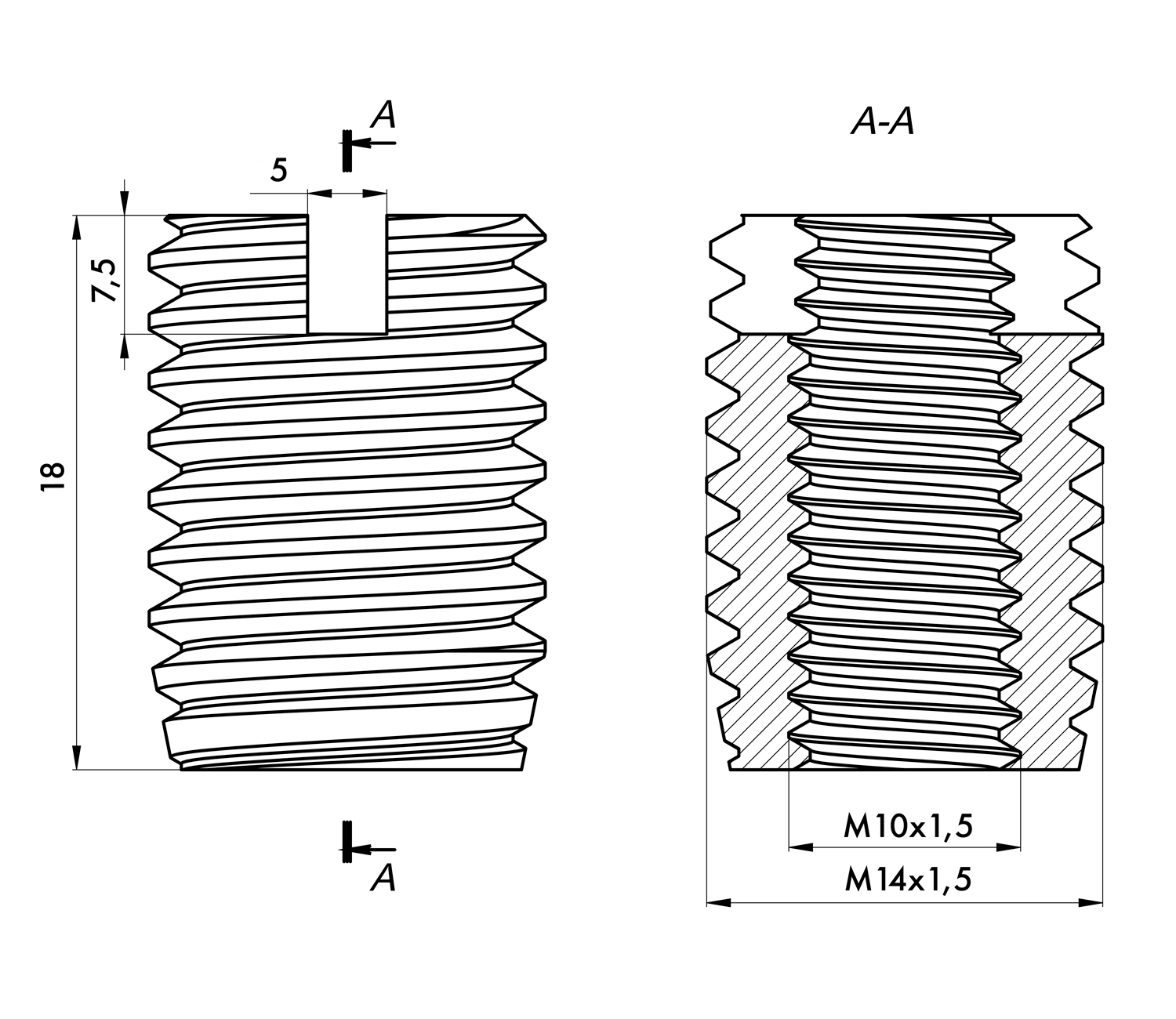 Втулка резьбовая М10х1,5/М14x1,5Втулка резьбовая М10х1,5/М14x1,5
