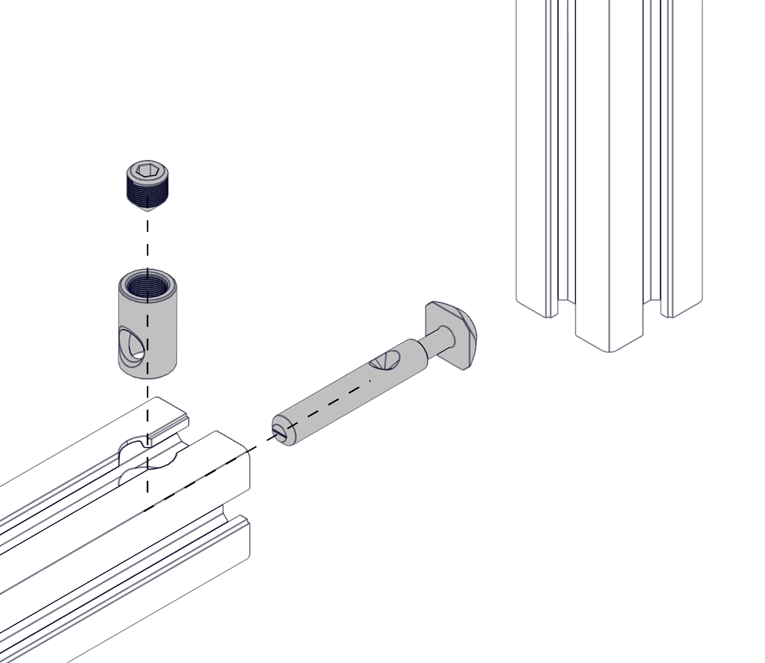 Быстросъемный соединитель D9.7x75 используется для углового соединения конструкционных алюминиевых профилей под углом 90 градусов по типу соединения торец к пазу. Совместим и используется с профилем 40,45,50,60 серий. Соединение профиля реализуются также быстро как и разборка.