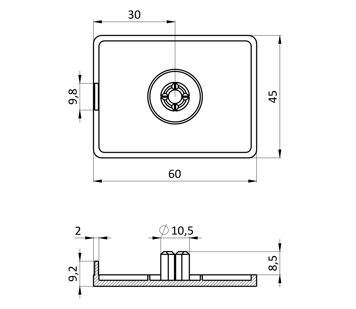 Заглушка торцевая 45х60Заглушка торцевая 45х60