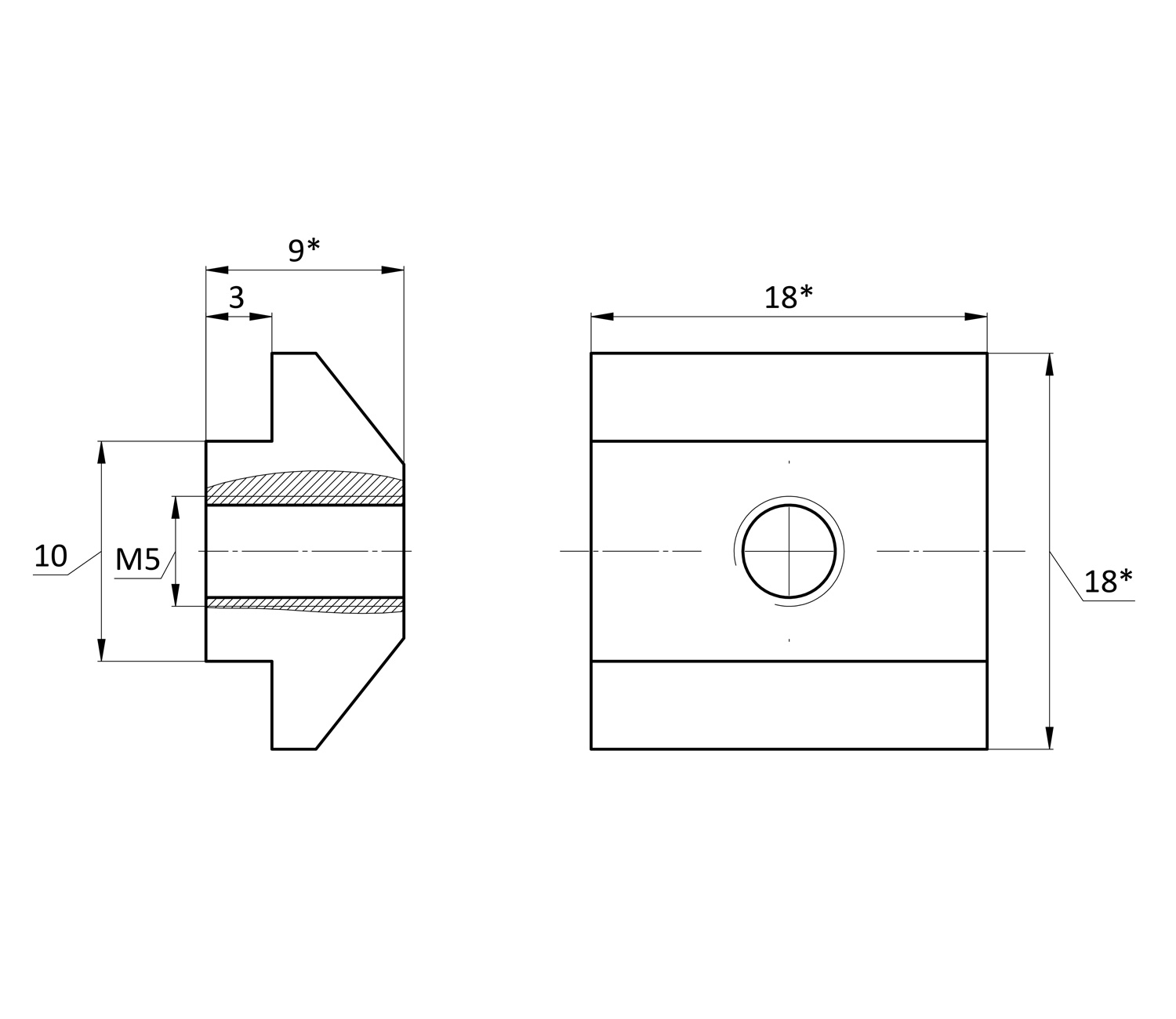Сухарь пазовый паз 10, 18 мм, М5Сухарь пазовый паз 10, 18 мм, М5