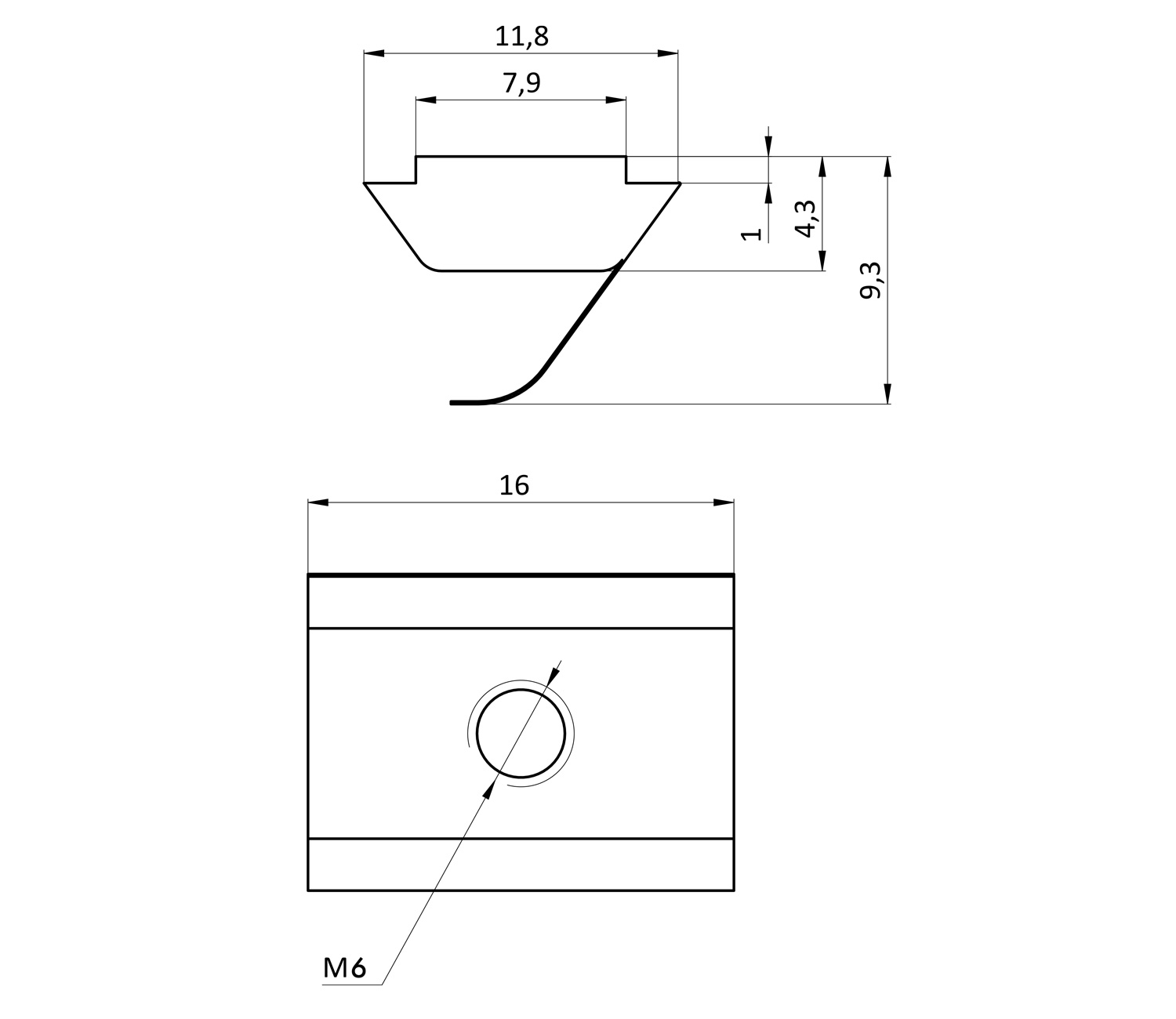 Сухарь пазовый паз 8, 16 мм, М6 с фиксатором совместим с конструкционными алюминиевыми профилями, имеющими 8 паз. Устанавливается любого места по длине плоскости профиля в паз.