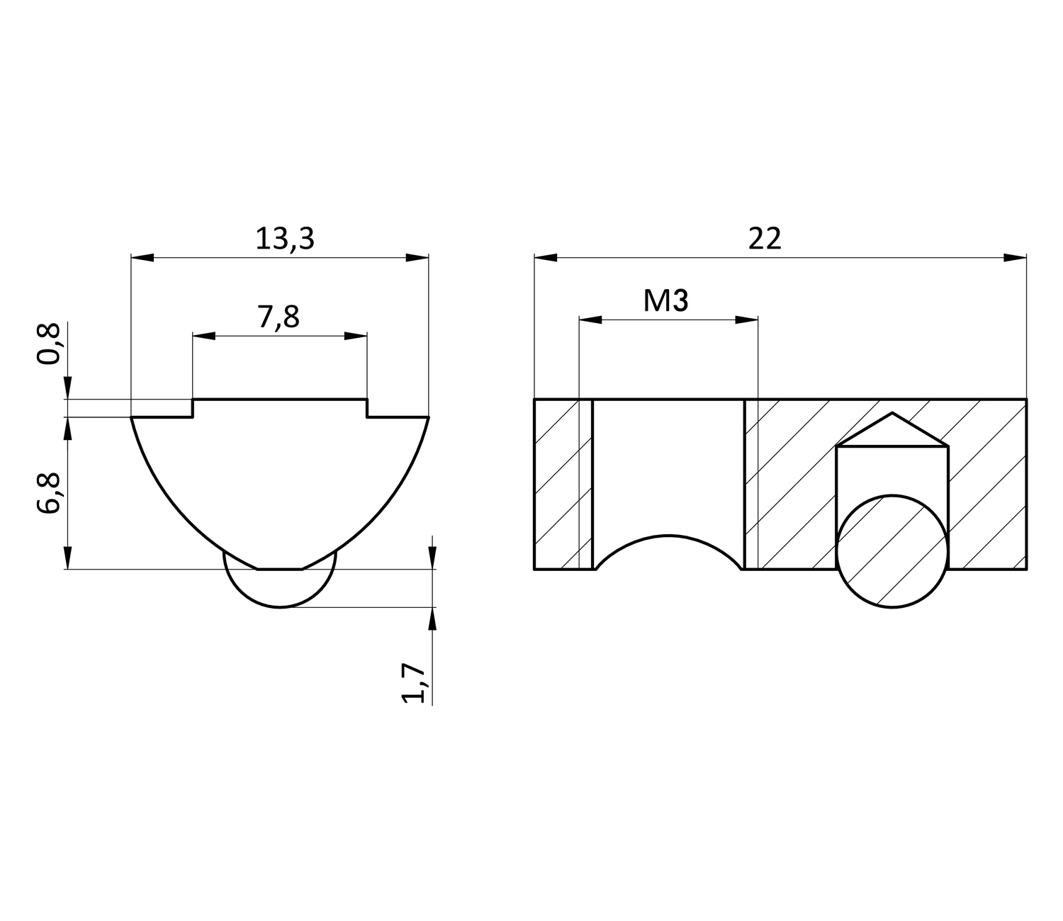 Сухарь пазовый с фиксатором паз 8, 22 мм, М3Сухарь пазовый с фиксатором паз 8, 22 мм, М3