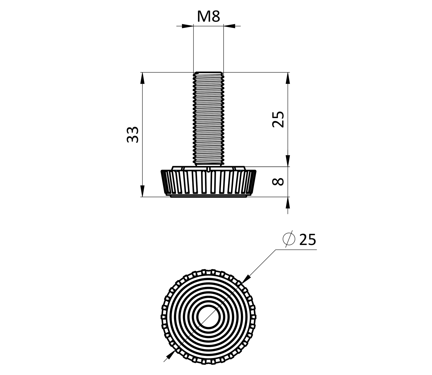 Опора регулируемая D25 М8 25 мм чернаяОпора регулируемая D25 М8 25 мм черная