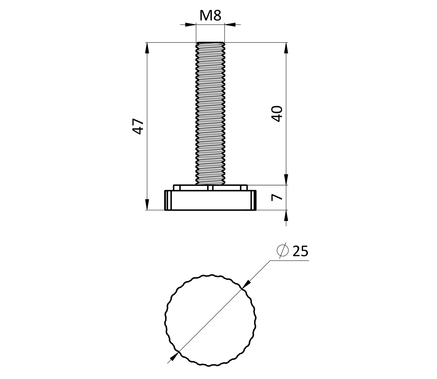 Опора регулируемая D25 М8 40 ммОпора регулируемая D25 М8 40 мм