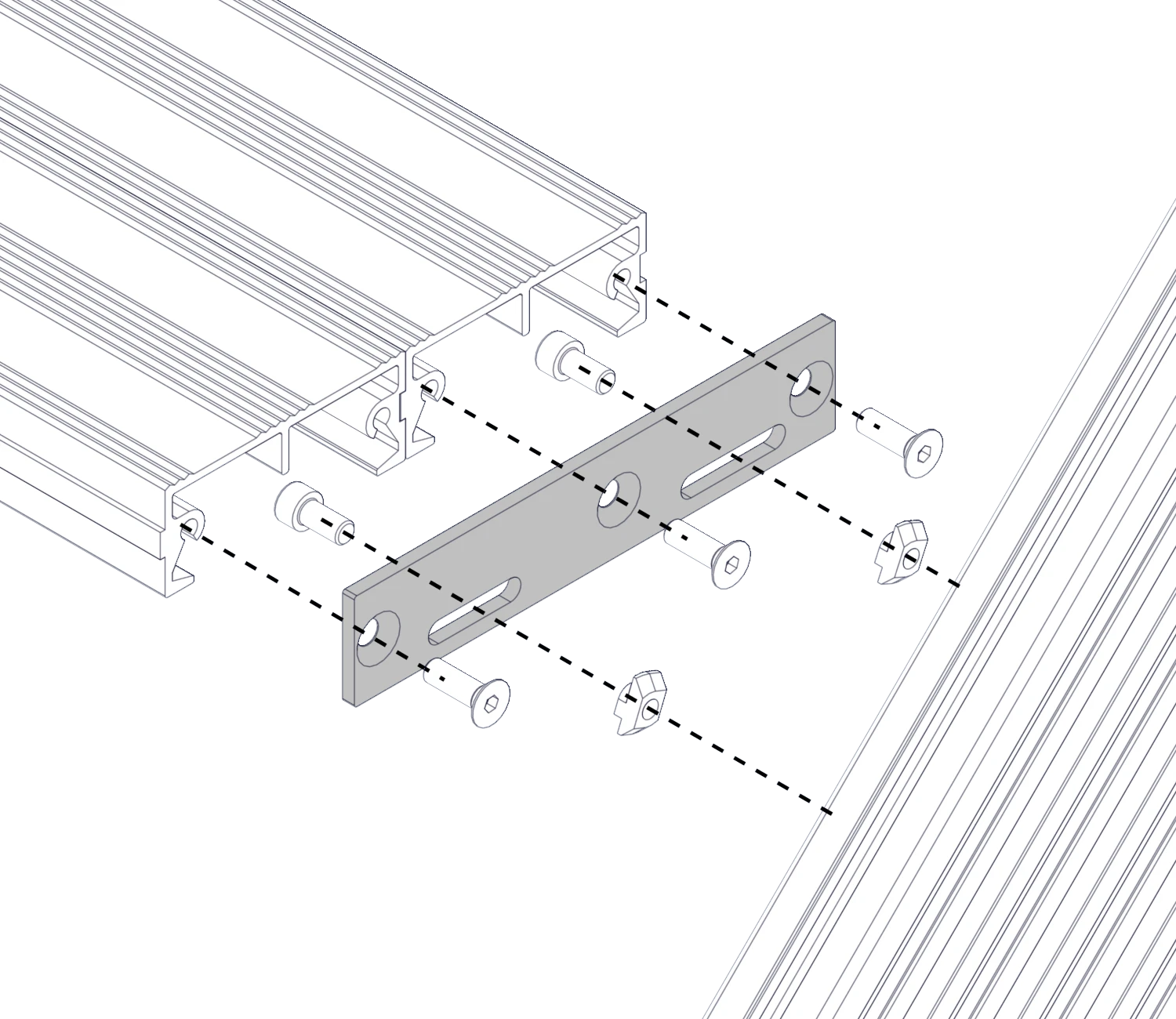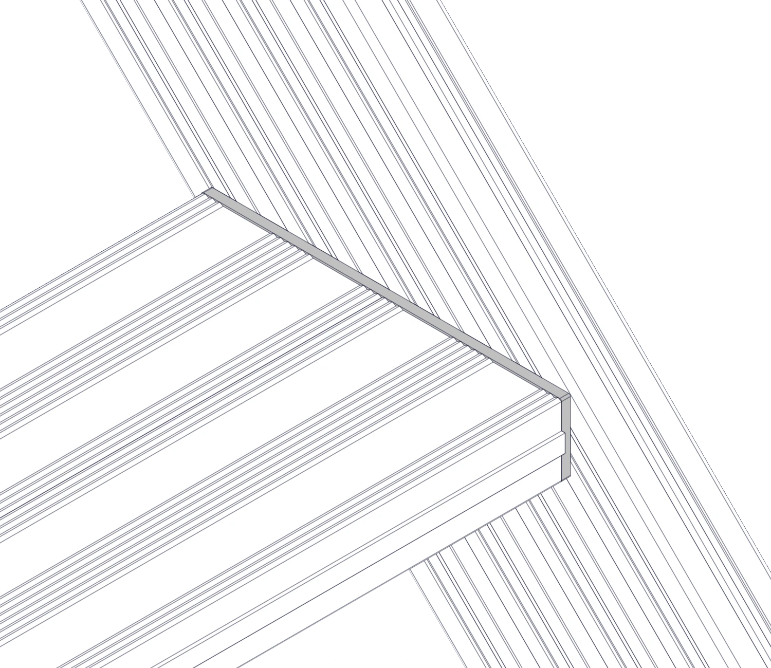 С помощью пластины путем соединения 2х профилей шириной 100 мм возможно увеличения ширины ступени до 200 мм.