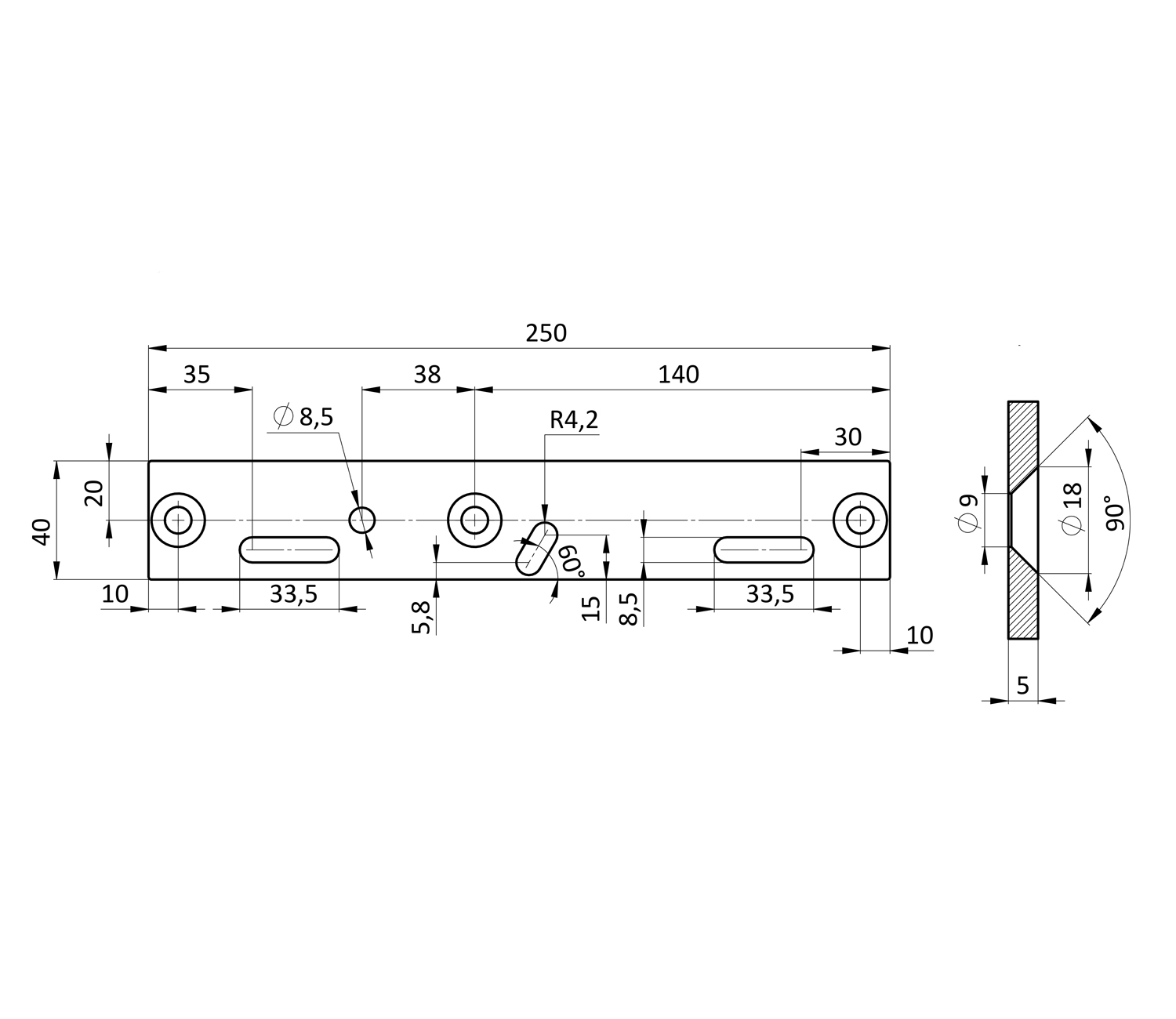 Торцевая пластина универсальная 40х250 ммТорцевая пластина универсальная 40х250 мм