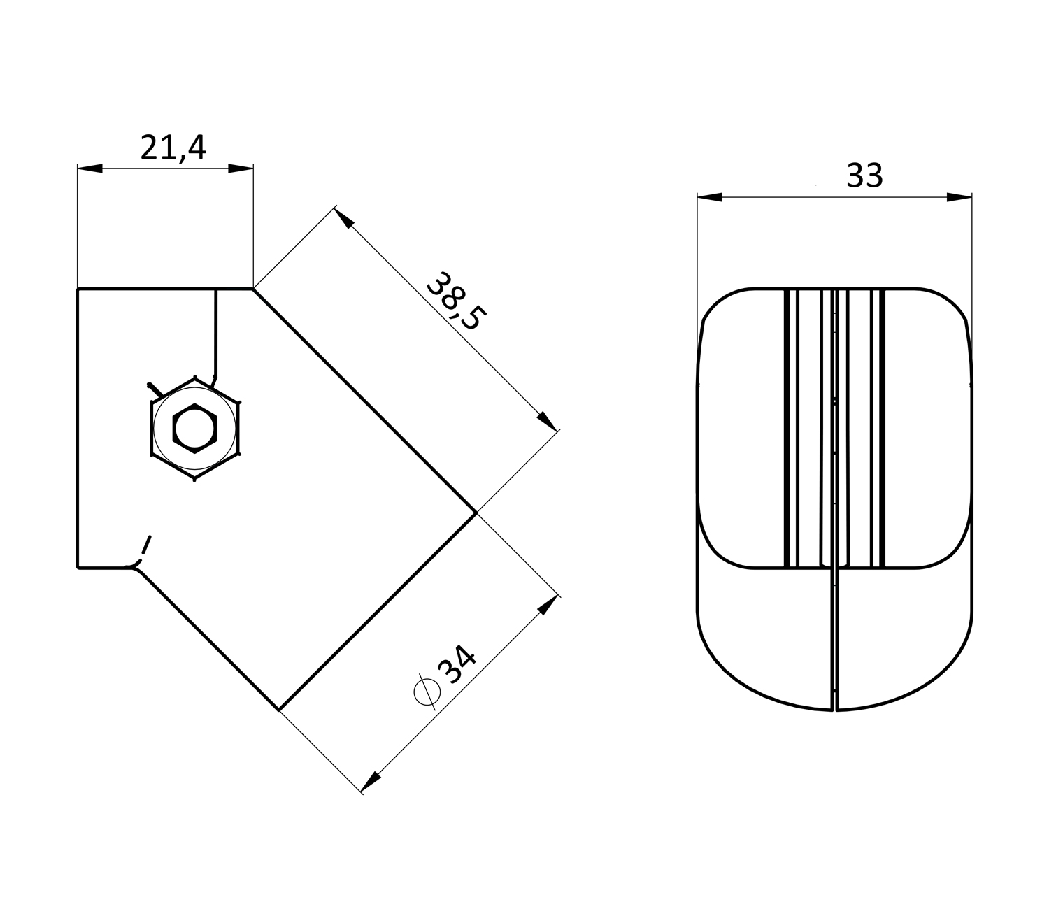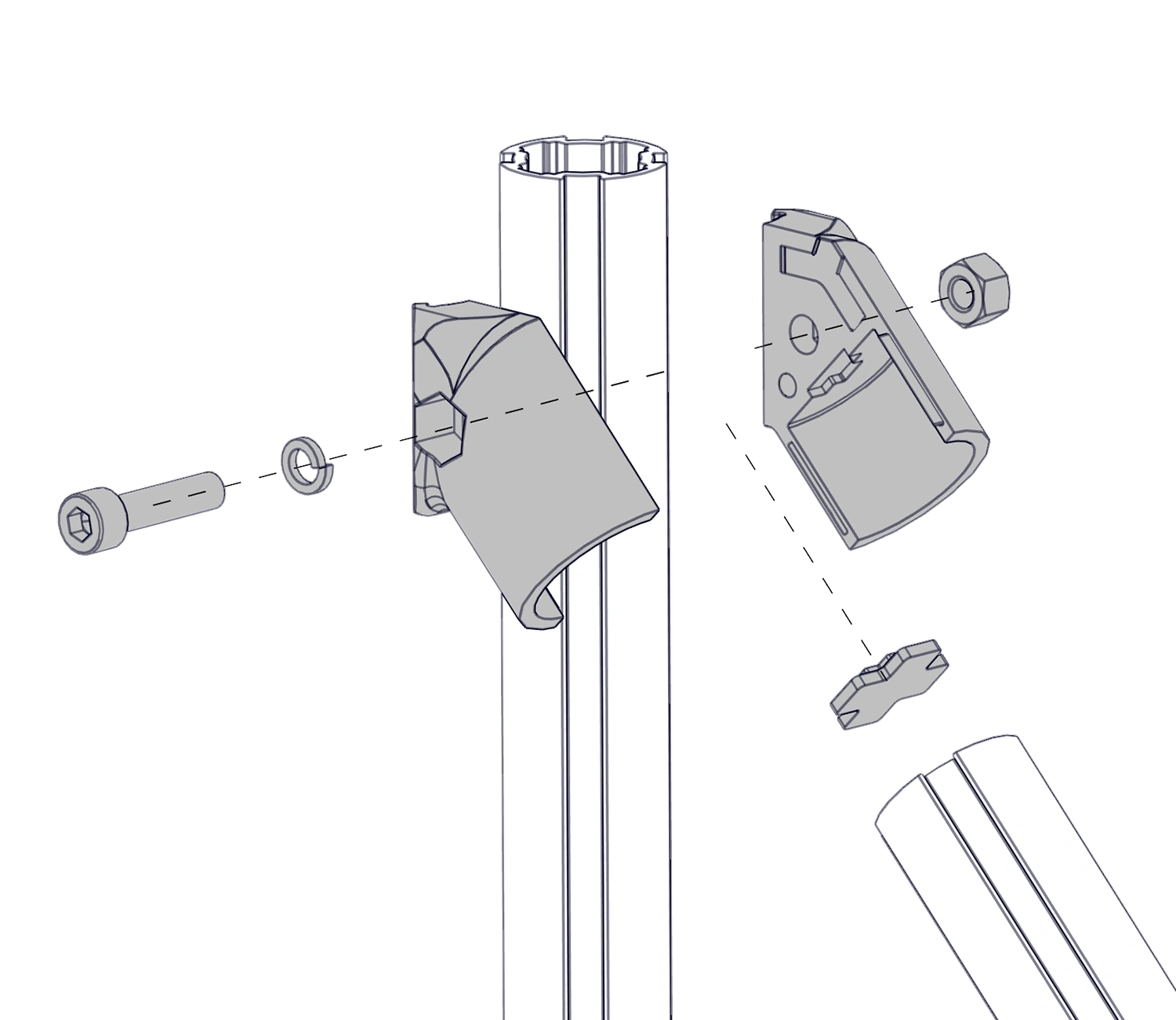 Соединитель наружный предназначен для наружного соединения конструкционного трубного профиля D28 под углом 45 градусов.