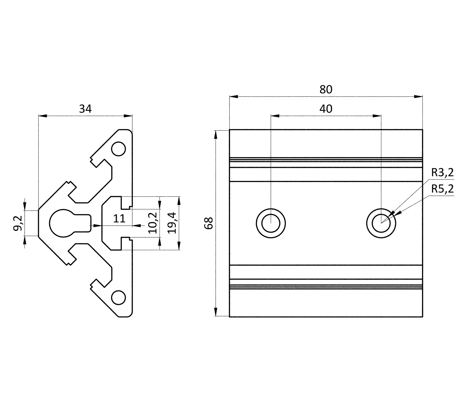 - Гайка Т-образная паз 10, М6 - 2 шт;