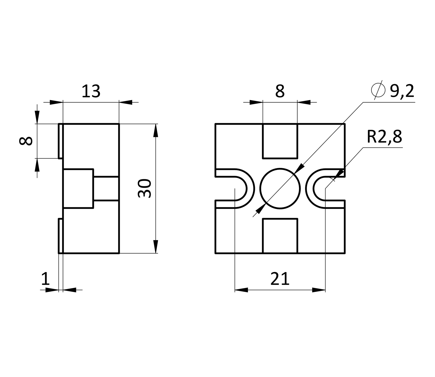 Соединитель торцевой 30х30, 30 серия, паз 8Соединитель торцевой 30х30, 30 серия, паз 8
