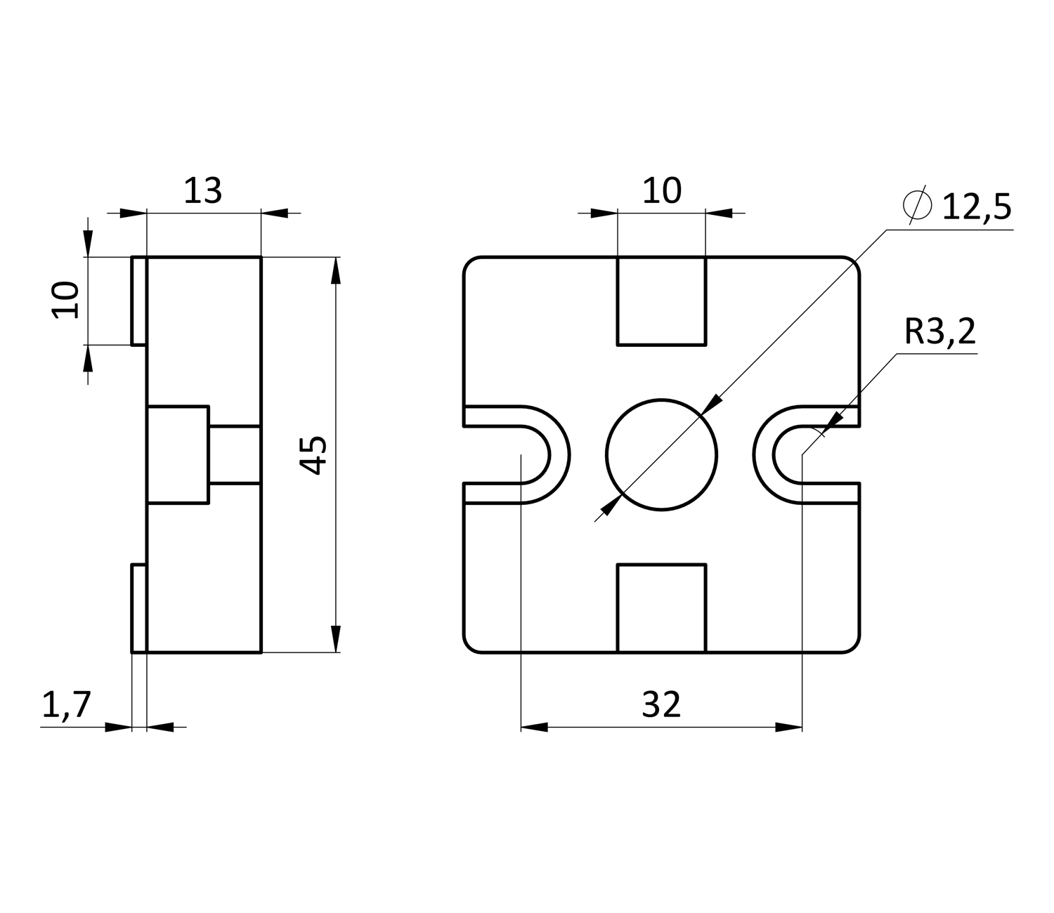 Соединитель торцевой 45х45 для конструкционного профиля 45 серии 10 паза.
