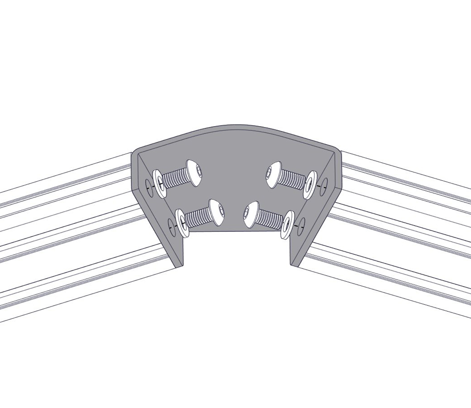 Угловой соединитель 20х40 стальной окрашенный совместим и используется для монтажа и соединения под углом 30 градусов торец к торцу конструкционного алюминиевого профиля 20 серии сечением 20х40 мм.