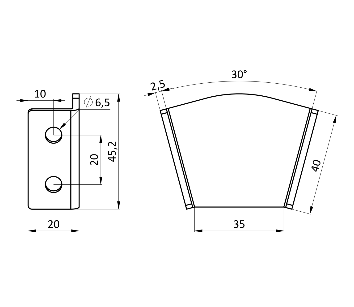 Угловой соединитель 20х40, 30 градусов, 20 серияУгловой соединитель 20х40, 30 градусов, 20 серия