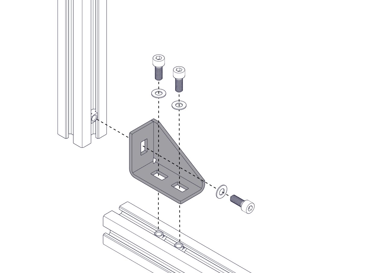 Угловой соединитель 80х60S из стали совместим и используется для монтажа и соединения под прямым углом конструкционного алюминиевого профиля 40 серии