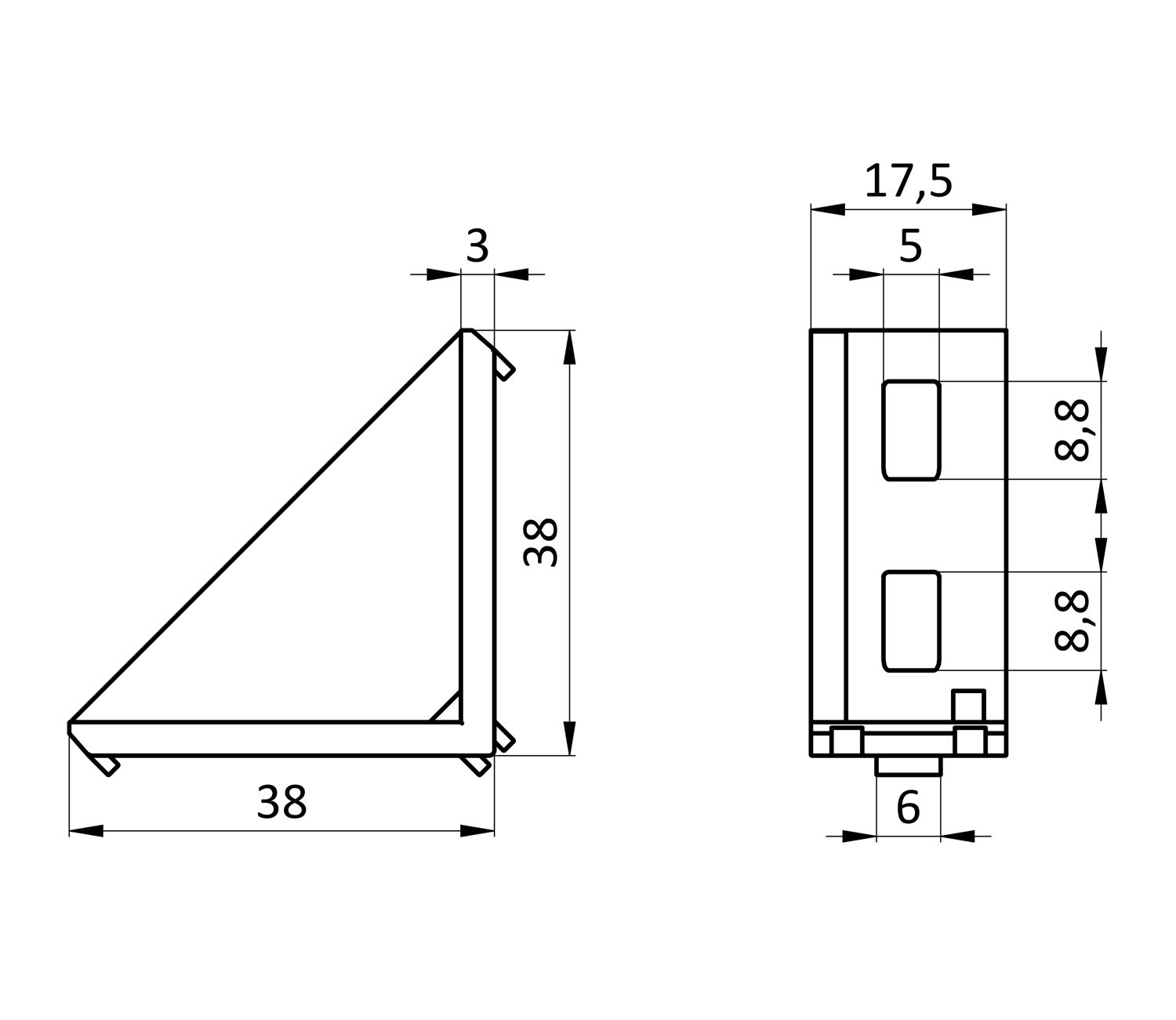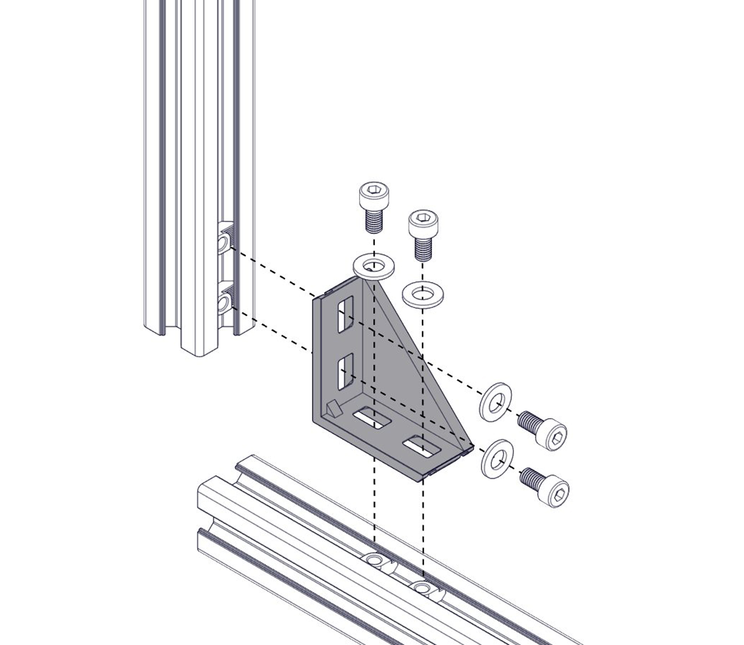 Алюминиевый уголок со специальными выступами по центру, которые являются защитой от поворота. Элемент помогает быстро и точно провести сборку конструкции. Подходит к профилю 20-й серии.