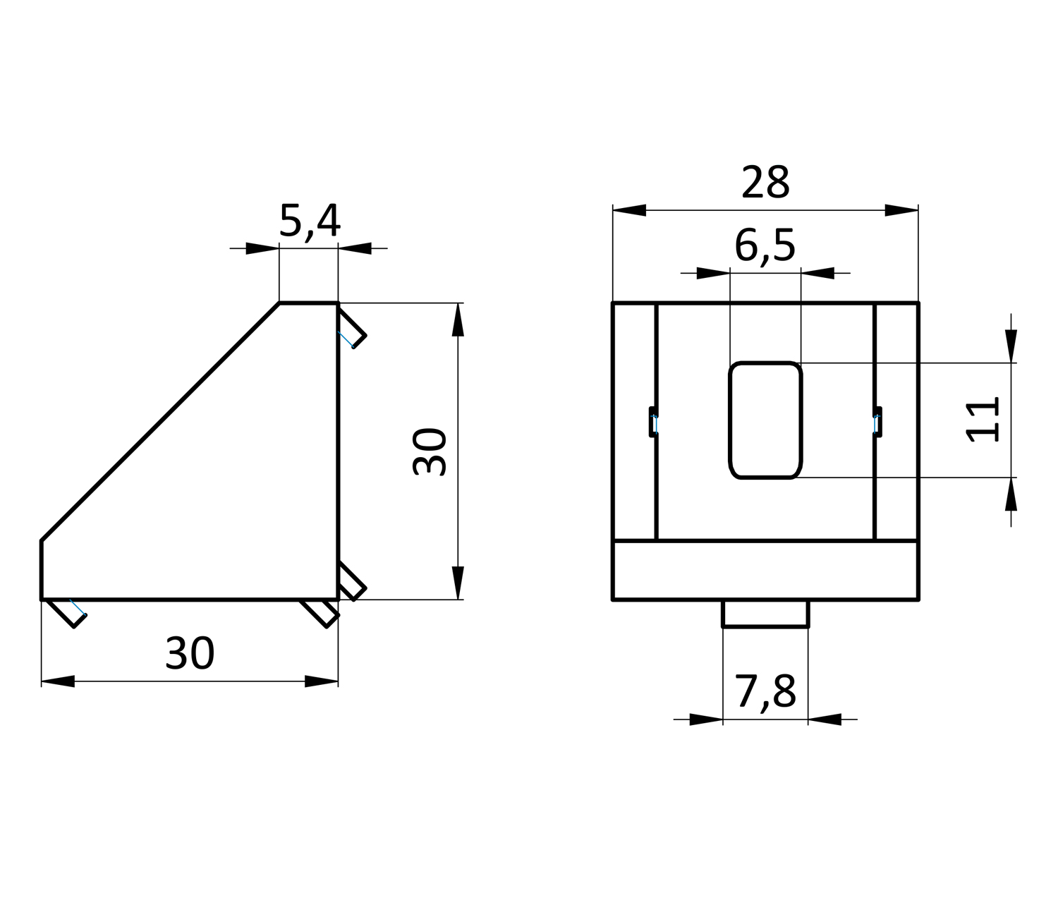 Вариант 2 соединения паз-паз профиля 30 серии паз 8 без заглушки