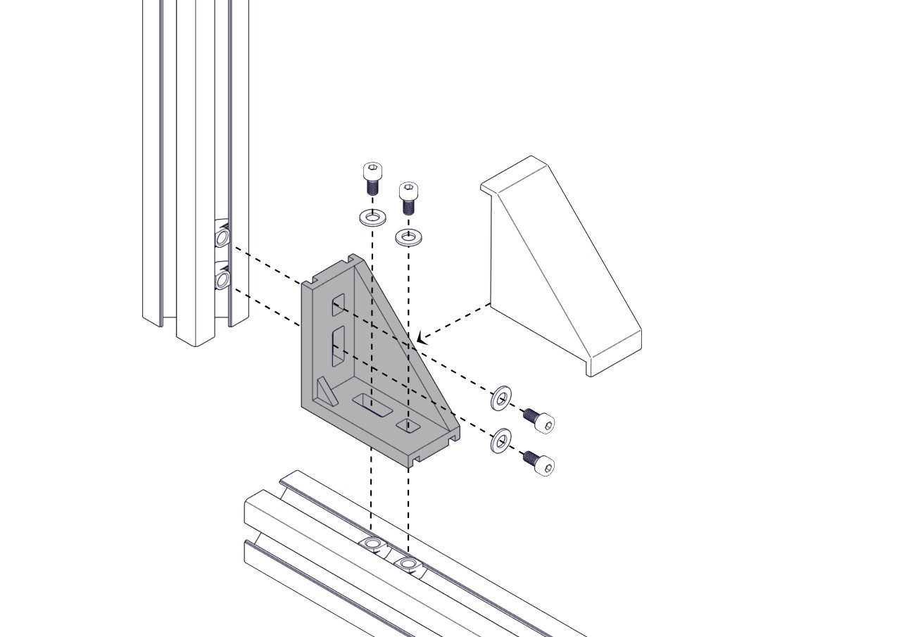 Соединительный уголок со специальными выступами по центру, которые являются защитой от поворота. Данный элемент помогает быстро и точно провести сборку конструкции.