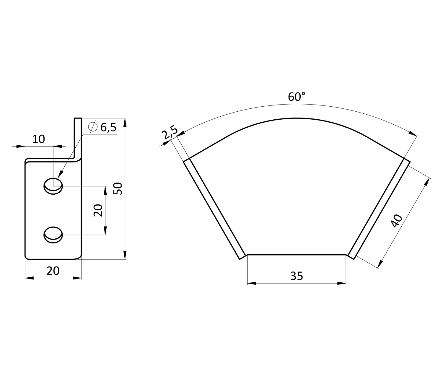 Угловой соединитель 20х40 стальной окрашенный совместим и используется для монтажа и соединения под углом 60 градусов торец к торцу конструкционного алюминиевого профиля 20 серии сечением 20х40 мм.