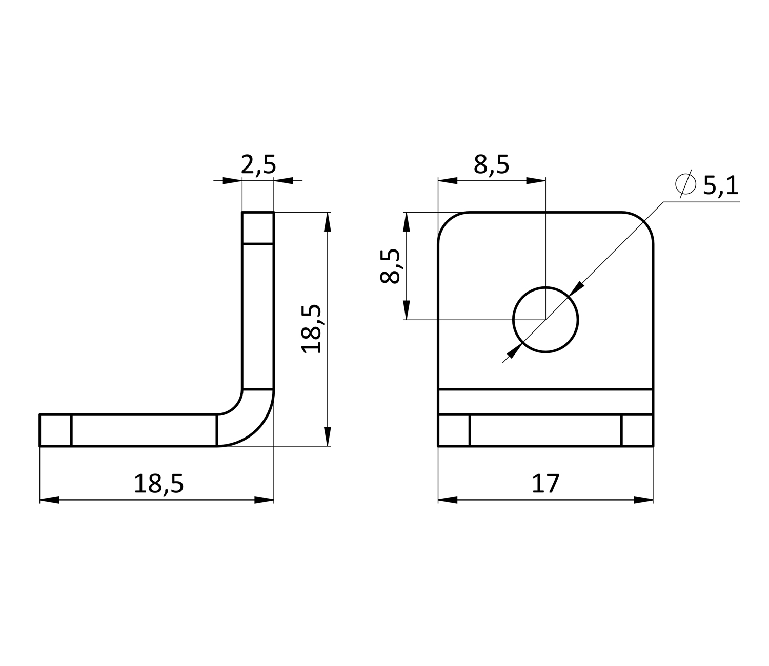 Угловой соединитель стальной 20х20L, 20 серия (черный)Угловой соединитель стальной 20х20L, 20 серия (черный)