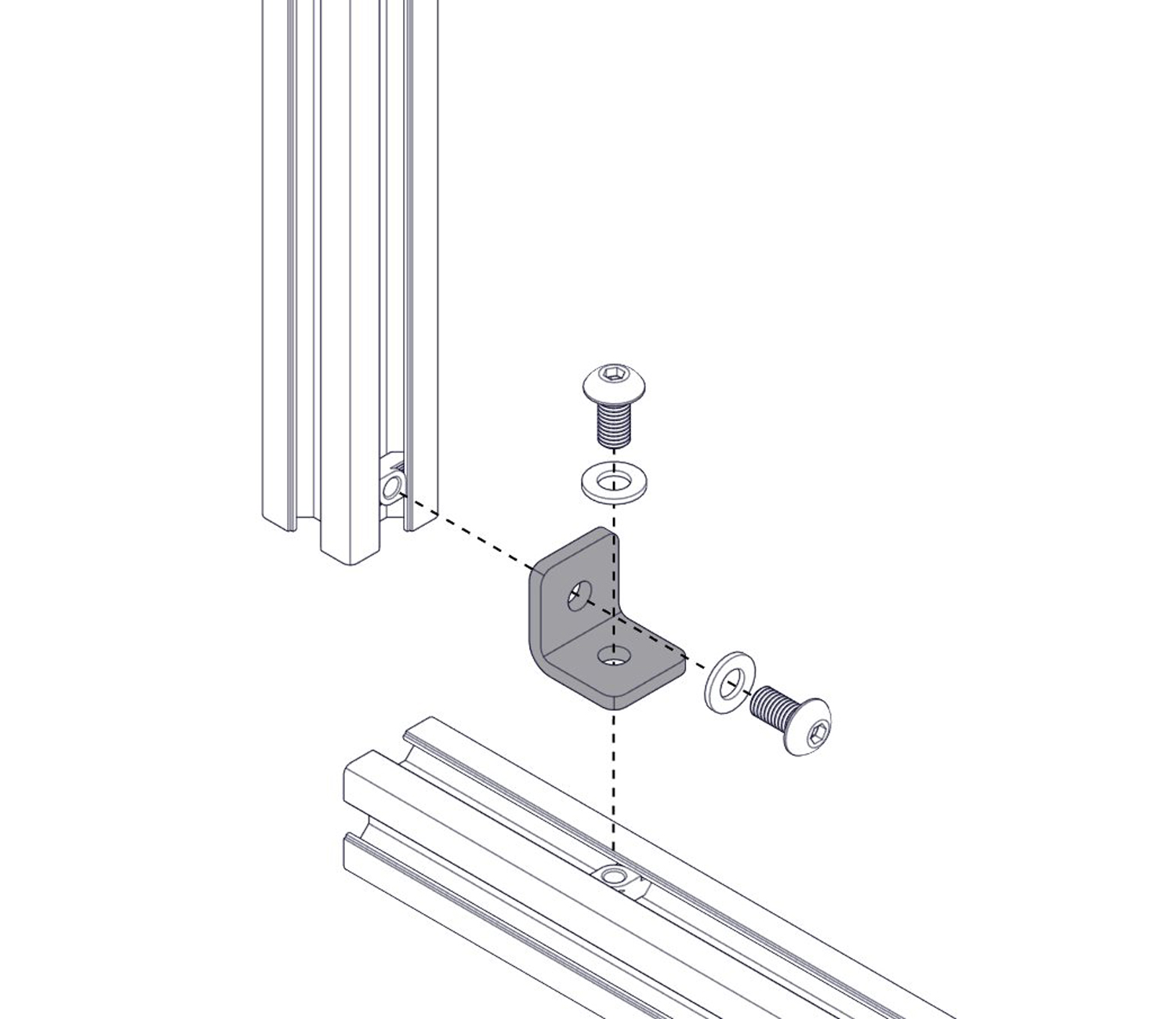 Угловой соединитель стальной 20х20L черного цвета применяется и рекомендуем для монтажа и соединения конструкционного алюминиевого профиля 20-й серии под прямым углом. Экономичный вариант для исполнения простого надежного соединения в конструкции.