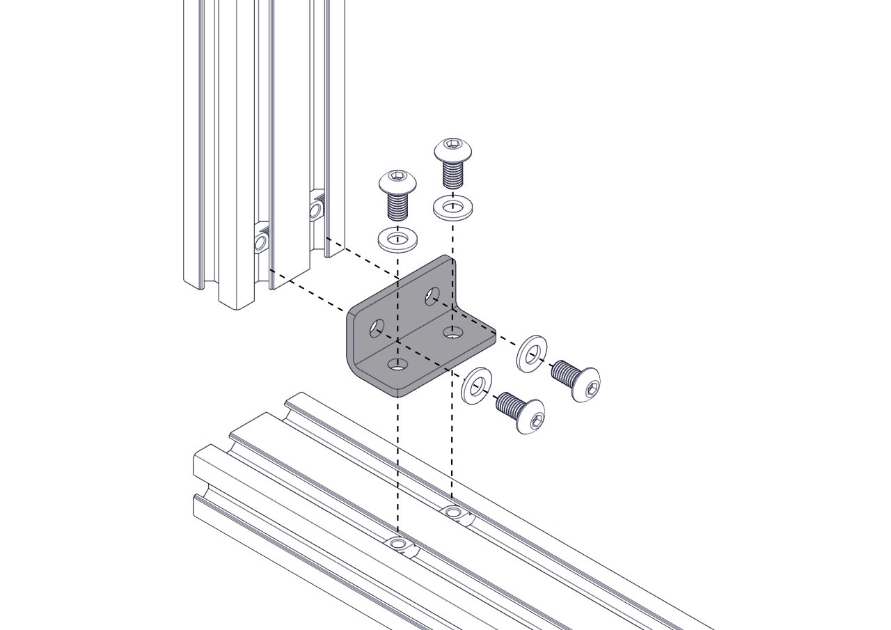 Угловой соединитель стальной 40х40L применяется и рекомендуем для монтажа и соединения под прямым углом конструкционного алюминиевого профиля 40-й серии в сечении 40х80. Экономичный вариант для исполнения простого надежного соединения в конструкции