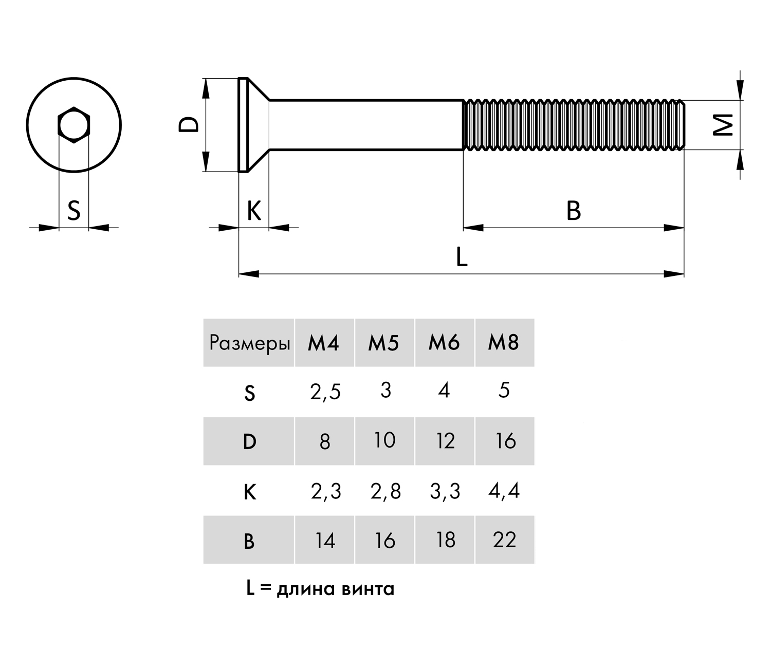 Благодаря потайной форме головки устанавливается в местах, требующих сохранения ровной поверхности. Полностью утапливается в детали или конструкции, обеспечивая эстетичный вид сборки в месте крепления.