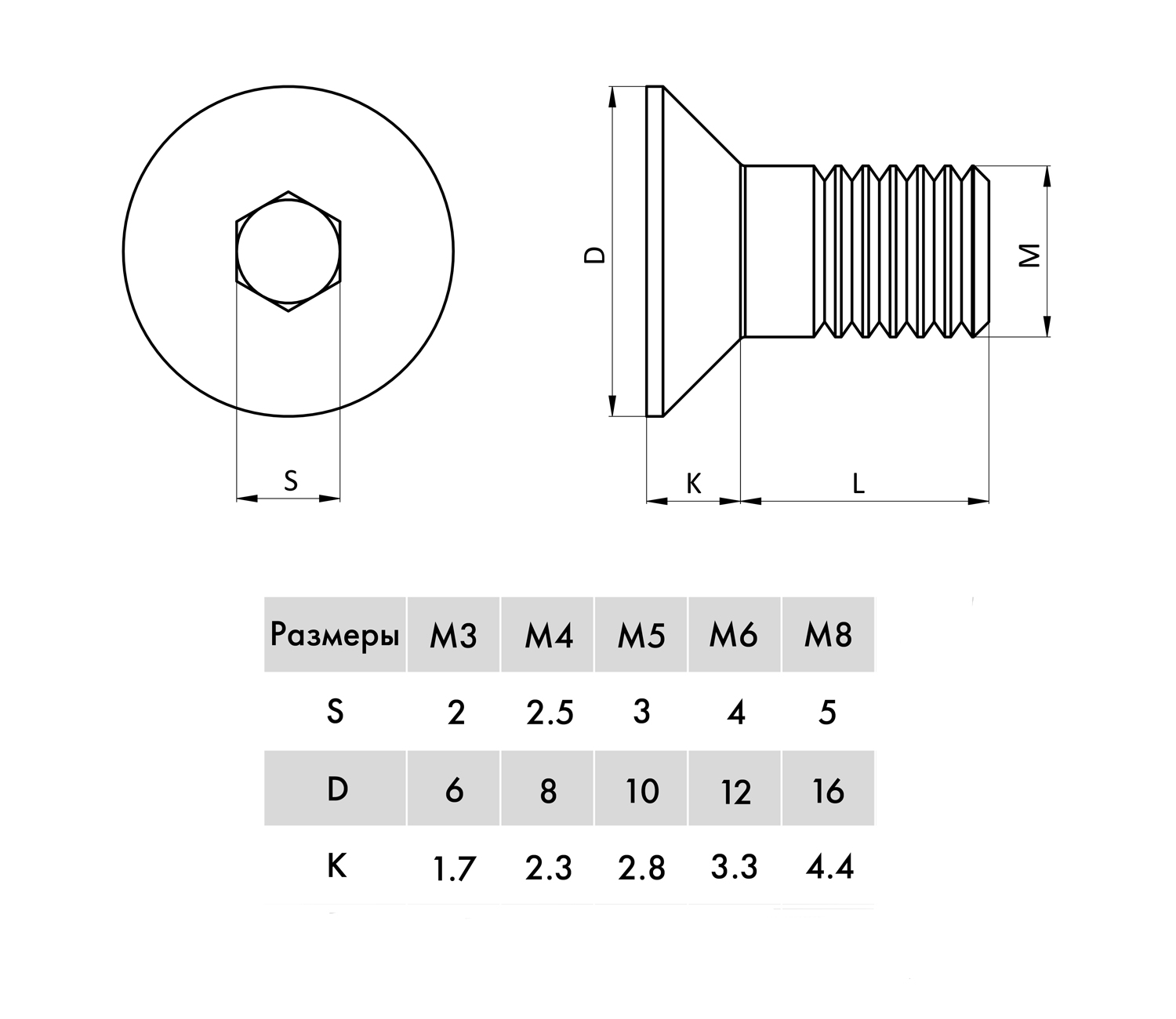 Вид головки: потайная с внутренним шестигранником