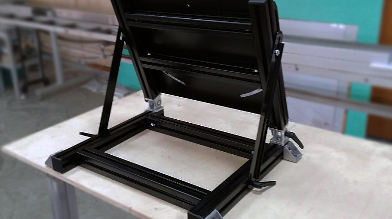 В результате появился кронштейн, выполненный из черного алюминиевого конструкционного профиля 40x40 мм, который отличается высокой прочностью и легкостью — он значительно превосходит по весу аналоги из других материалов.