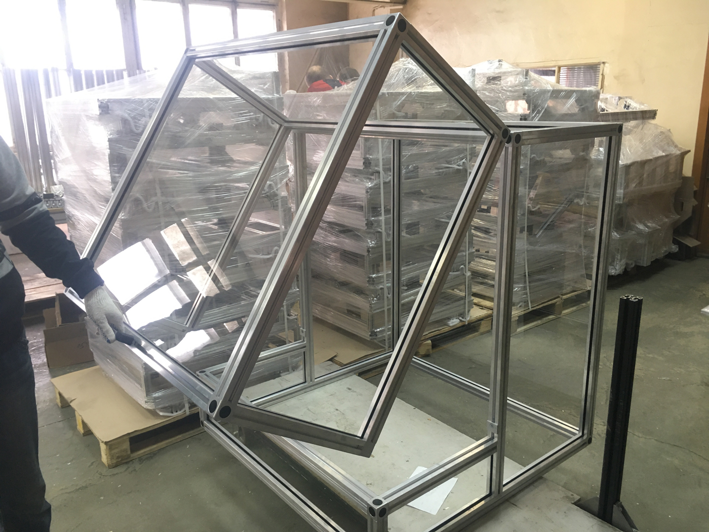 - Каркас ячейки собран из конструкционного алюминиевого профиля в сечении 40×40 мм;