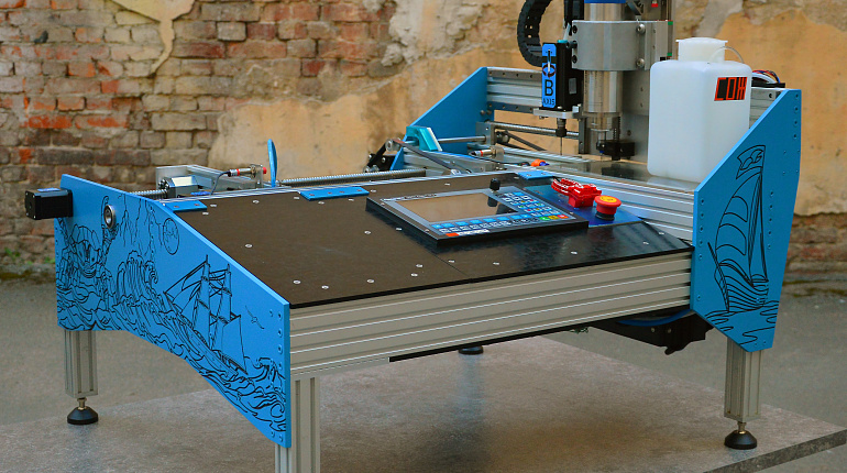 Для организации проводки и укладки кабелей в пазы профиля, в некоторых частях станка использована заглушка пазовая Паз 6 синяя (2,0 м).