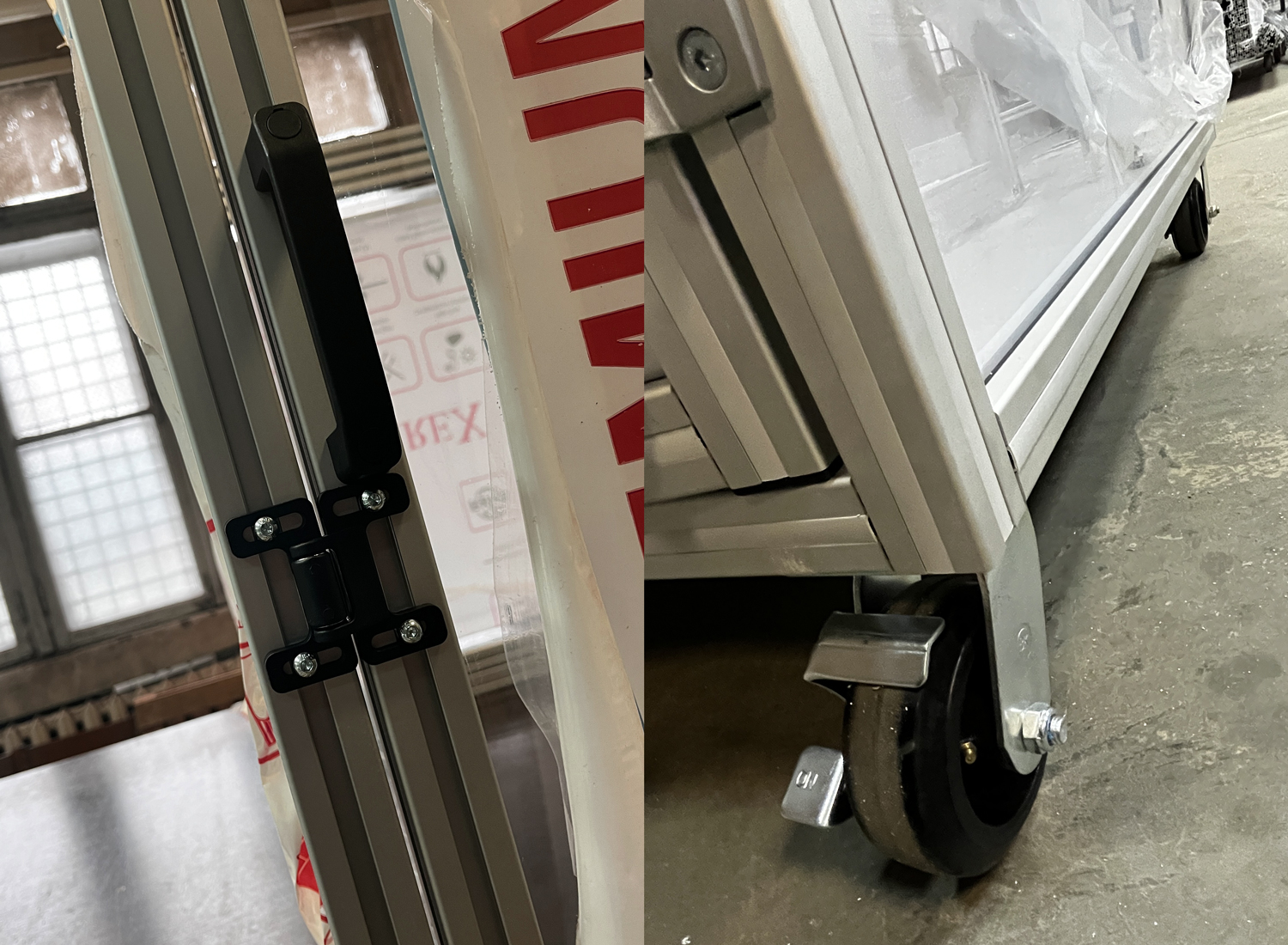 - Мобильность: конструкция оснащена колесами со стопором, что позволяет легко перемещать ячейку между аудиториями и фиксировать её в нужном положении.